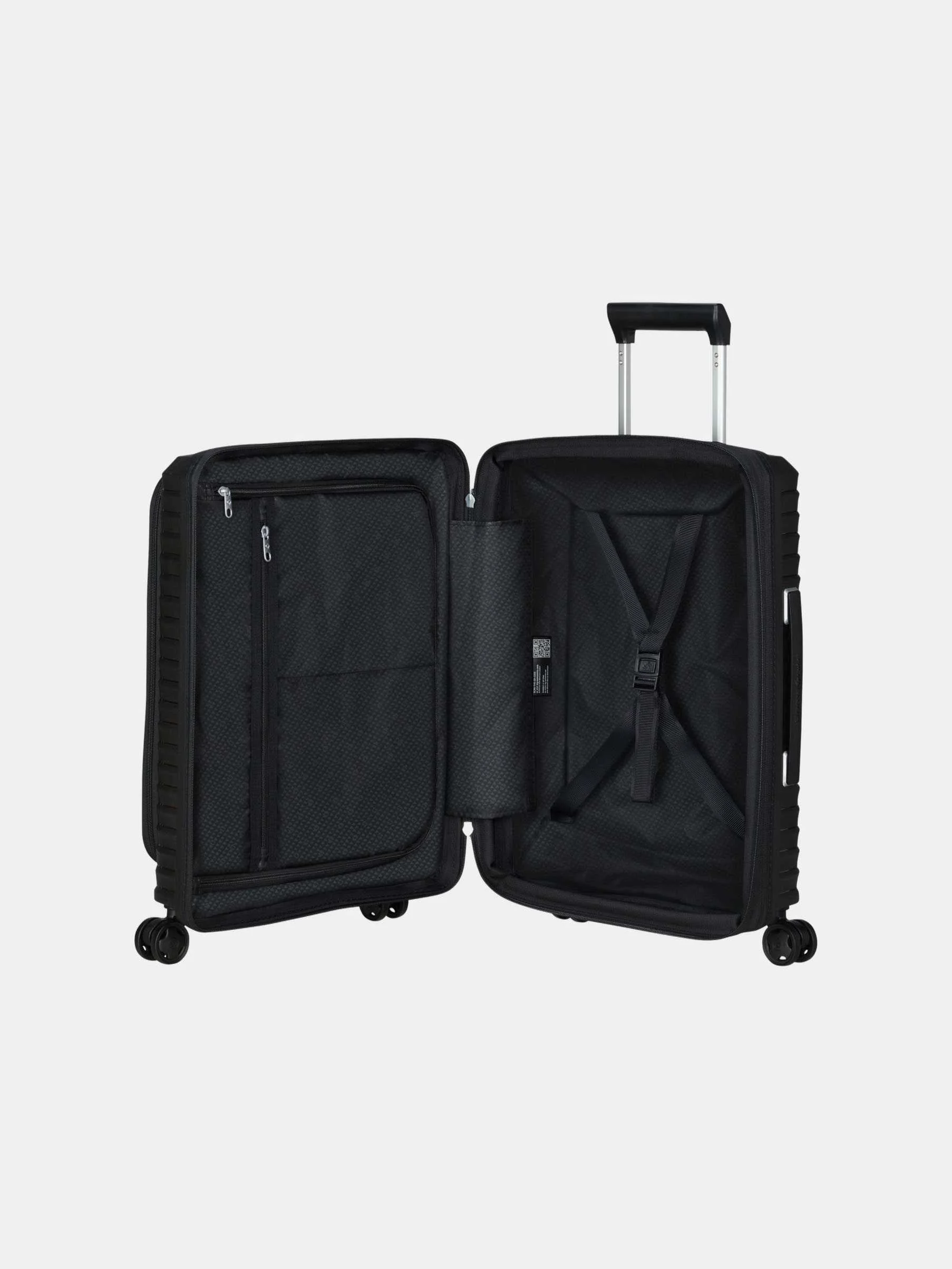 Samsonite Upscape 55/20 – the perfect partner for comfortable travel. Distinguished by its lightness, shock-absorbing wheels, and removable, washable interior lining. Expandability and elegant silver details make every journey even more enjoyable.