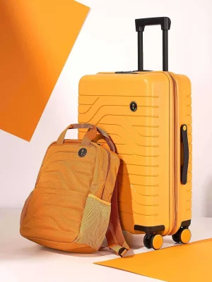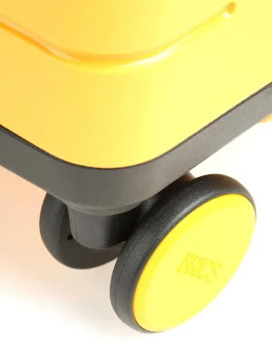 • Wheels – four recessed double wheels with 360° rotation, rubber coating for extra quiet movement, and Bric’s logo.