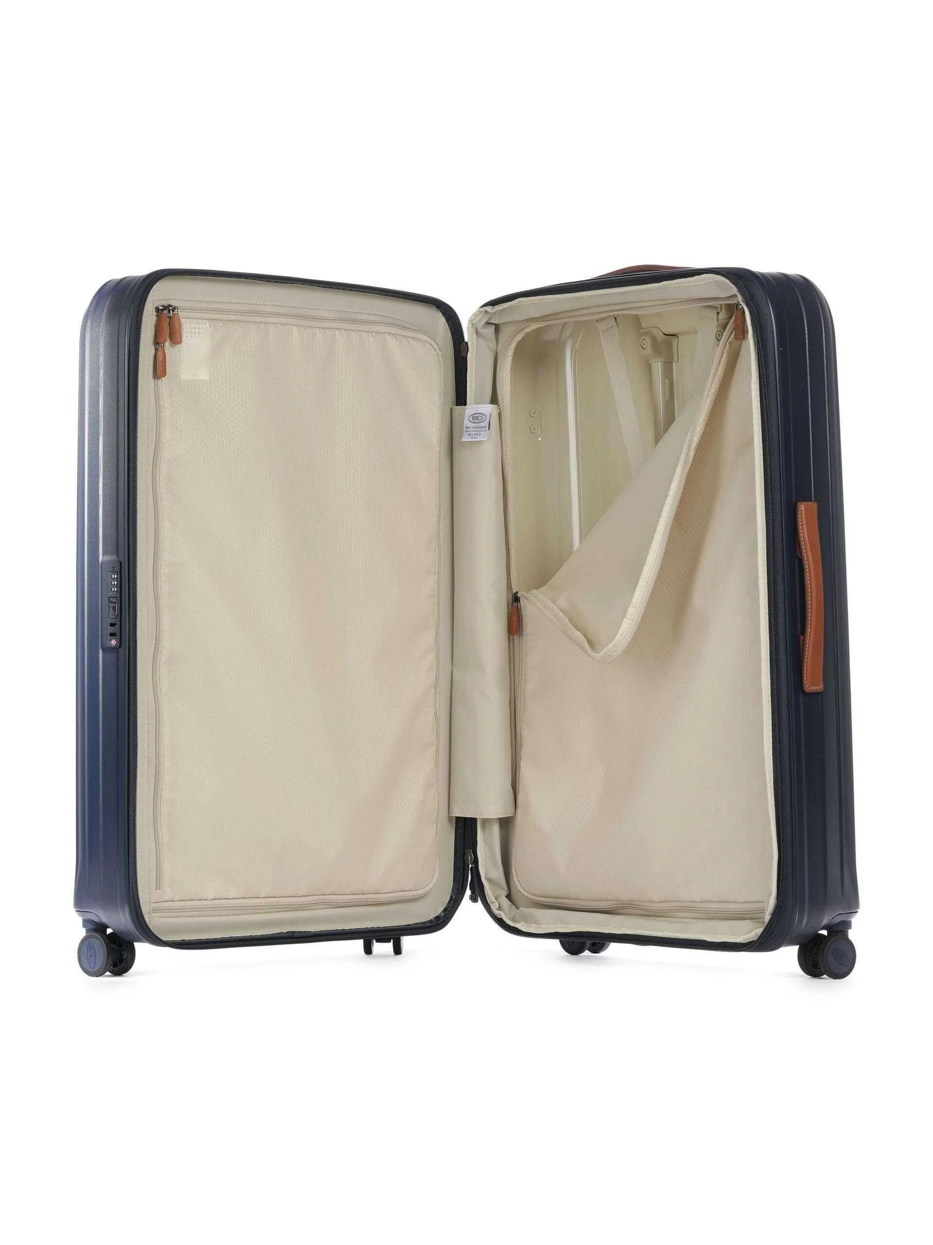 Bric's Taormina Ultra-light XL Trolley – a lightweight and durable XL-sized suitcase made of polycarbonate resistant to shocks and scratches. The practical interior is easy to clean, equipped with a zipper and clothing straps to ensure perfect organization. It can also be expanded when needed.