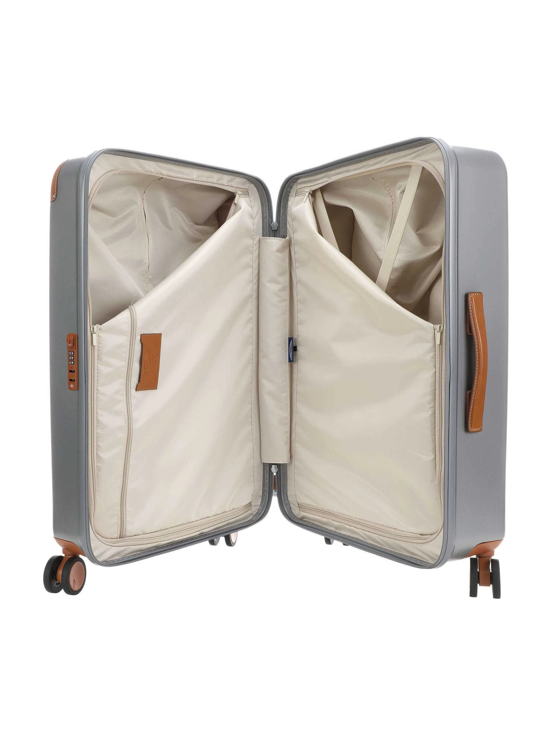 Bric's Large Trolley Amalfi – made from recycled polycarbonate, making it lightweight, flexible, and exceptionally durable. The double zipper with rubber coating ensures water resistance, while the integrated TSA lock provides added security.