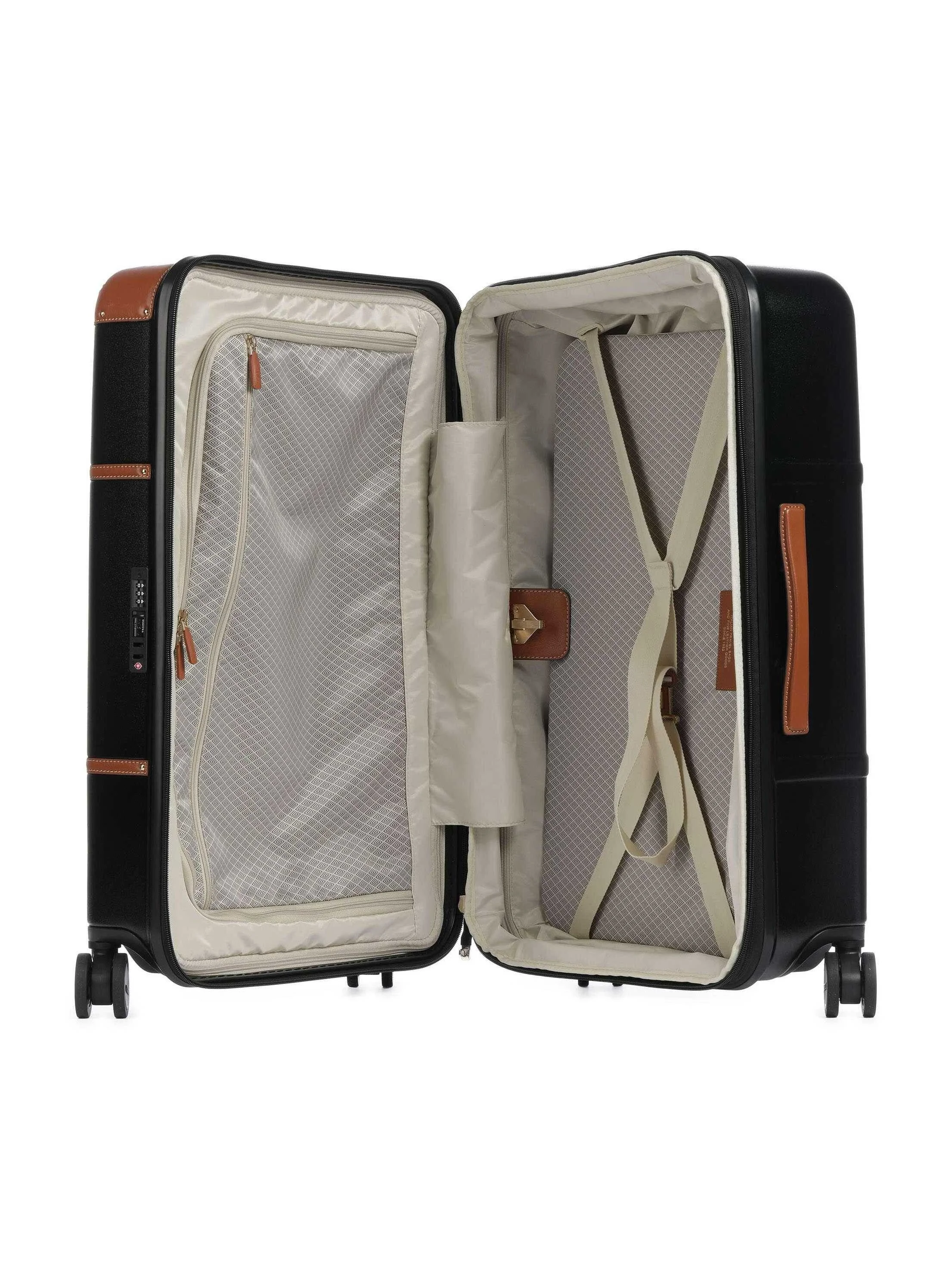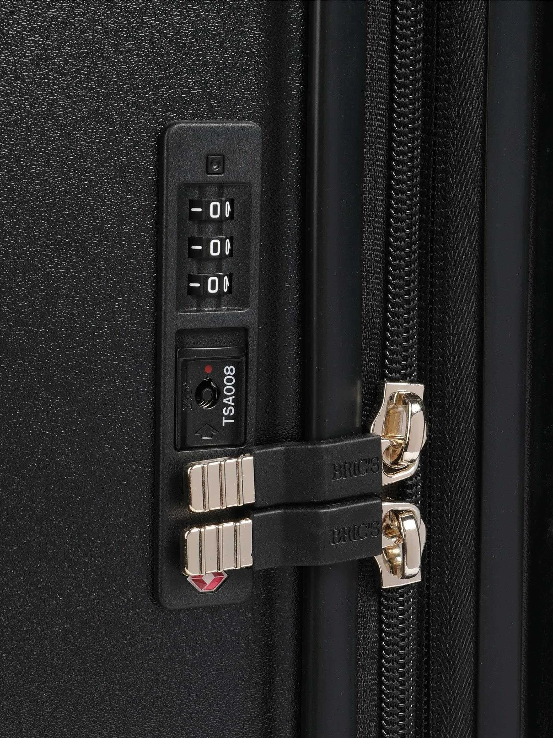 Bric's Medium Trolley Bellagio – made from recycled polycarbonate, a lightweight, flexible, and durable material. The closure is equipped with a TSA lock and ultra-secure anti-falsification zipper for maximum protection.