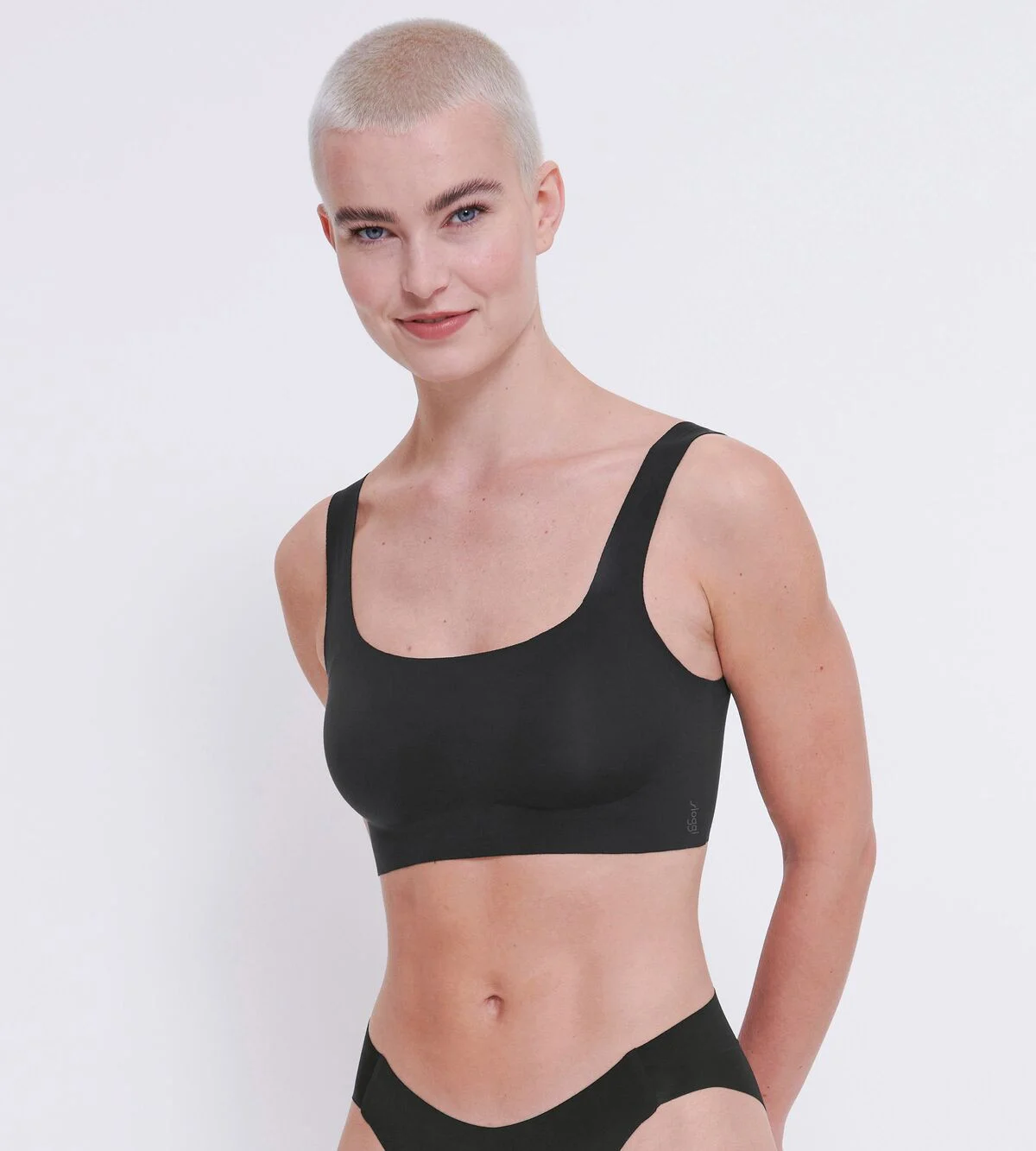 Sloggi Zero Feel Top – invisible comfort with a modern silhouette for everyday wear. Made from ultra-soft, breathable, and GRS-certified recycled microfibre, it offers 360° stretch for a perfect fit that holds its shape. Removable pads create a natural look, while innovative dot bonding technology on the straps and underbust provides extra support and invisible wear under clothing.