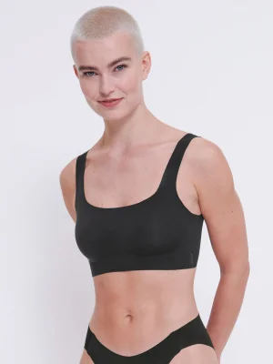 Sloggi Zero Feel Top – invisible comfort with a modern silhouette for everyday wear. Made from ultra-soft, breathable, and GRS-certified recycled microfibre, it offers 360° stretch for a perfect fit that holds its shape. Removable pads create a natural look, while innovative dot bonding technology on the straps and underbust provides extra support and invisible wear under clothing.