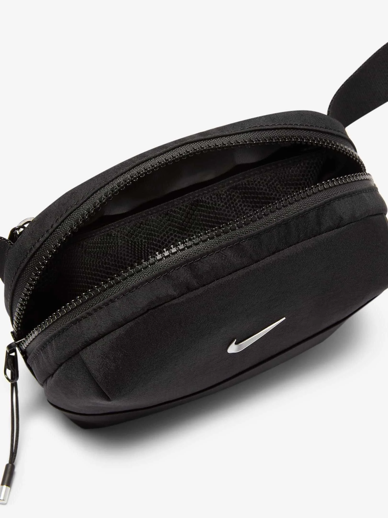 Keep your essentials close and your style game on point. A 2-liter volume capacity makes this bag ideal for carrying your keys, cards and phone. A rear zippered pocket provides quick access to small items while interior slip pockets make organization easy. An aluminum Swoosh logo adds a splash of sophisticated flair while an adjustable strap gives you multiple styling options.
