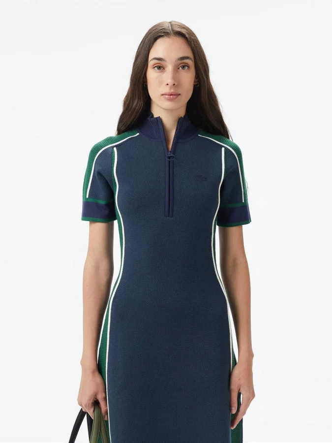 Lacoste - Lacoste Women's Classic Fit Short Sleeve Half Zipper Color Block Dress