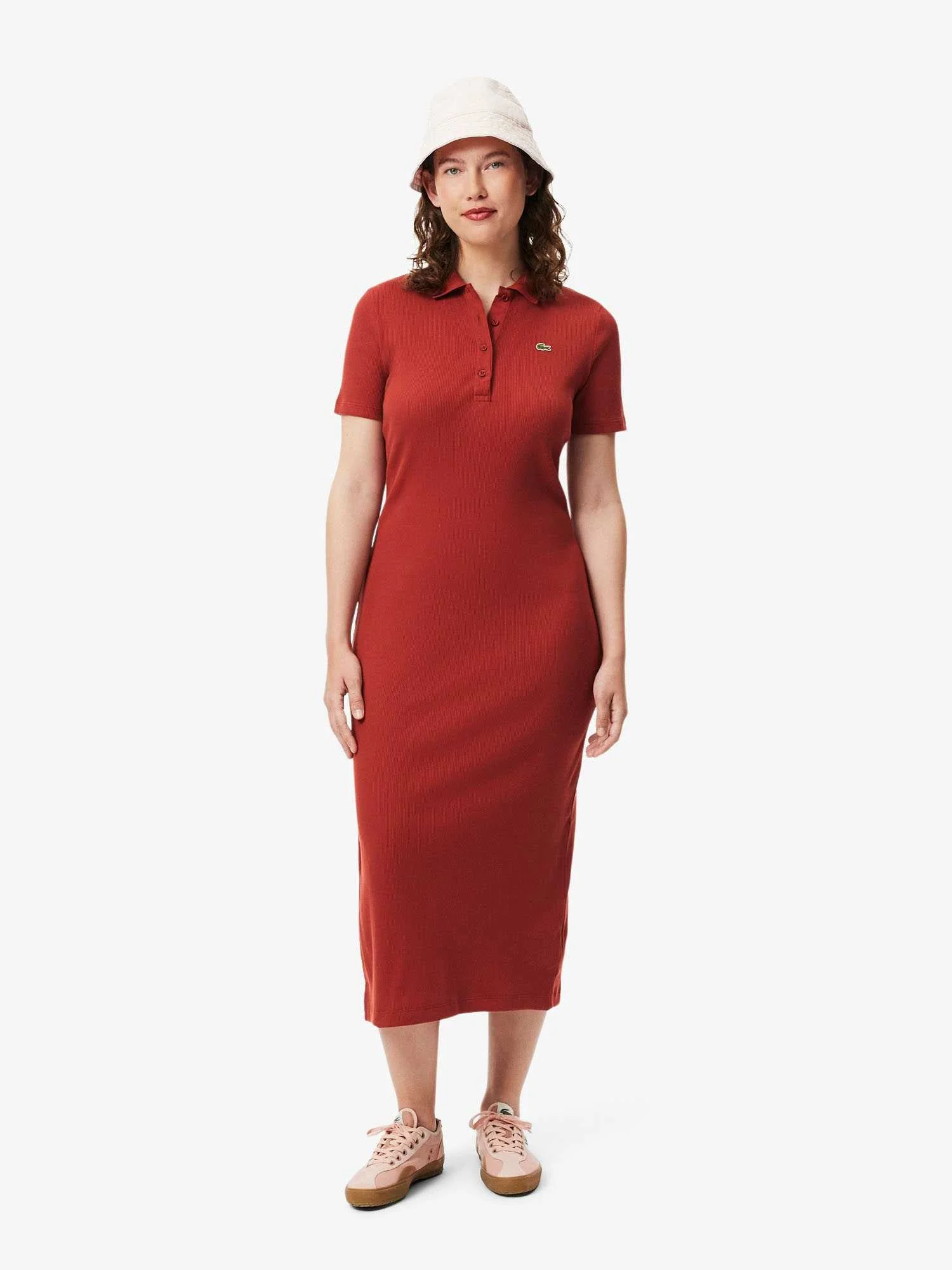 Lacoste - Womens Long Ribbed Cotton Polo Dress