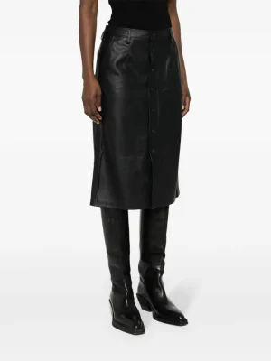 Designed with a high waist and crafted from smooth faux leather, this skirt combines elegance with a contemporary edge. A versatile choice that transitions seamlessly from office hours to evening events.