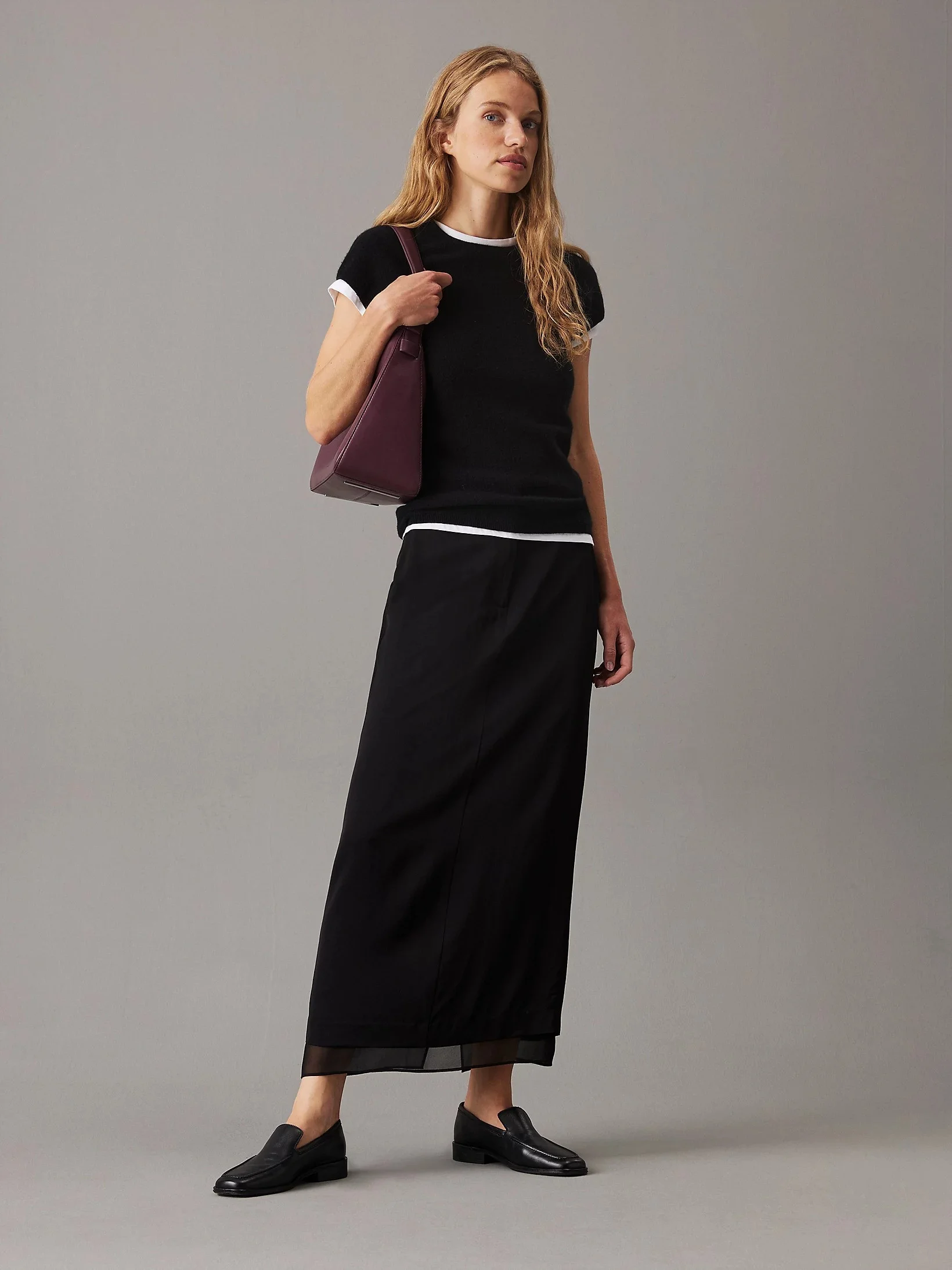 CALVIN KLEIN - SHEER PANEL LAYER ANKLE SKIRT