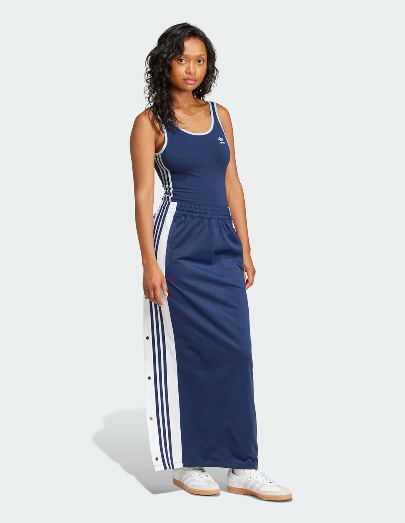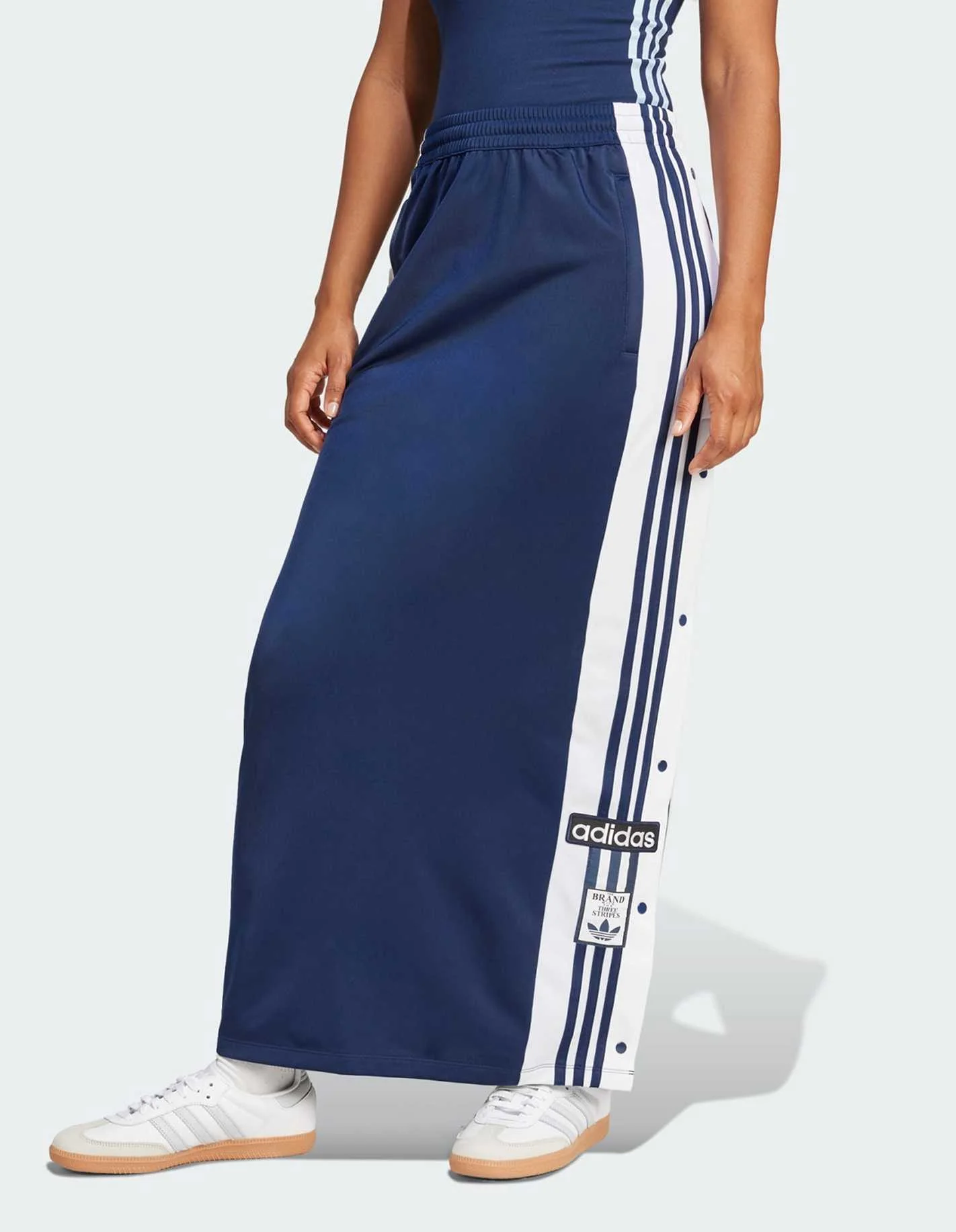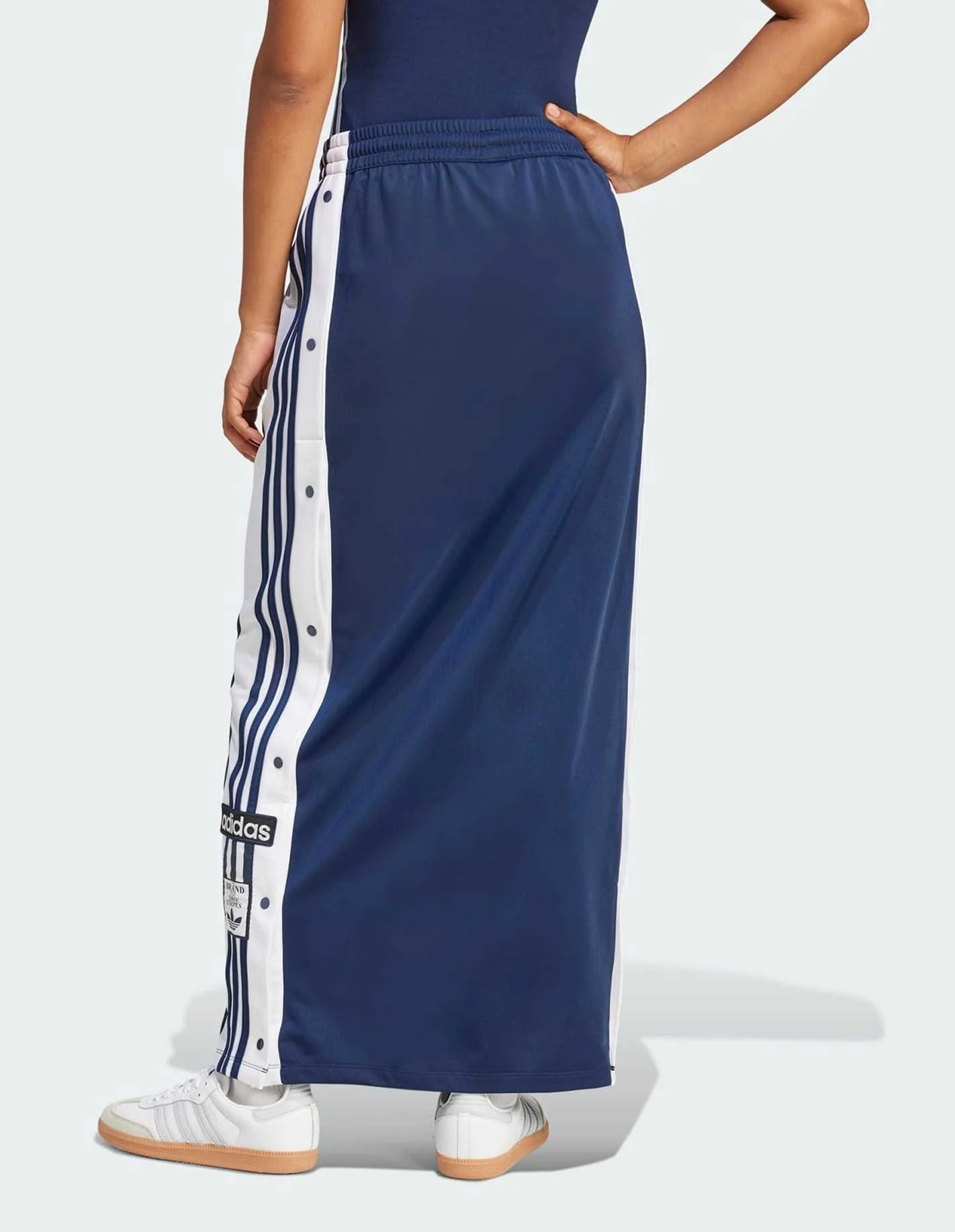 Inspired by the iconic Adibreak track pants, this Adicolor skirt brings that signature sporty vibe to your everyday look. Made from shiny tricot fabric, the skirt has a loose shape and a maxi length for a laid-back feel. Team it with a crop top and trainers for an outfit that's as comfortable as it is stylish.