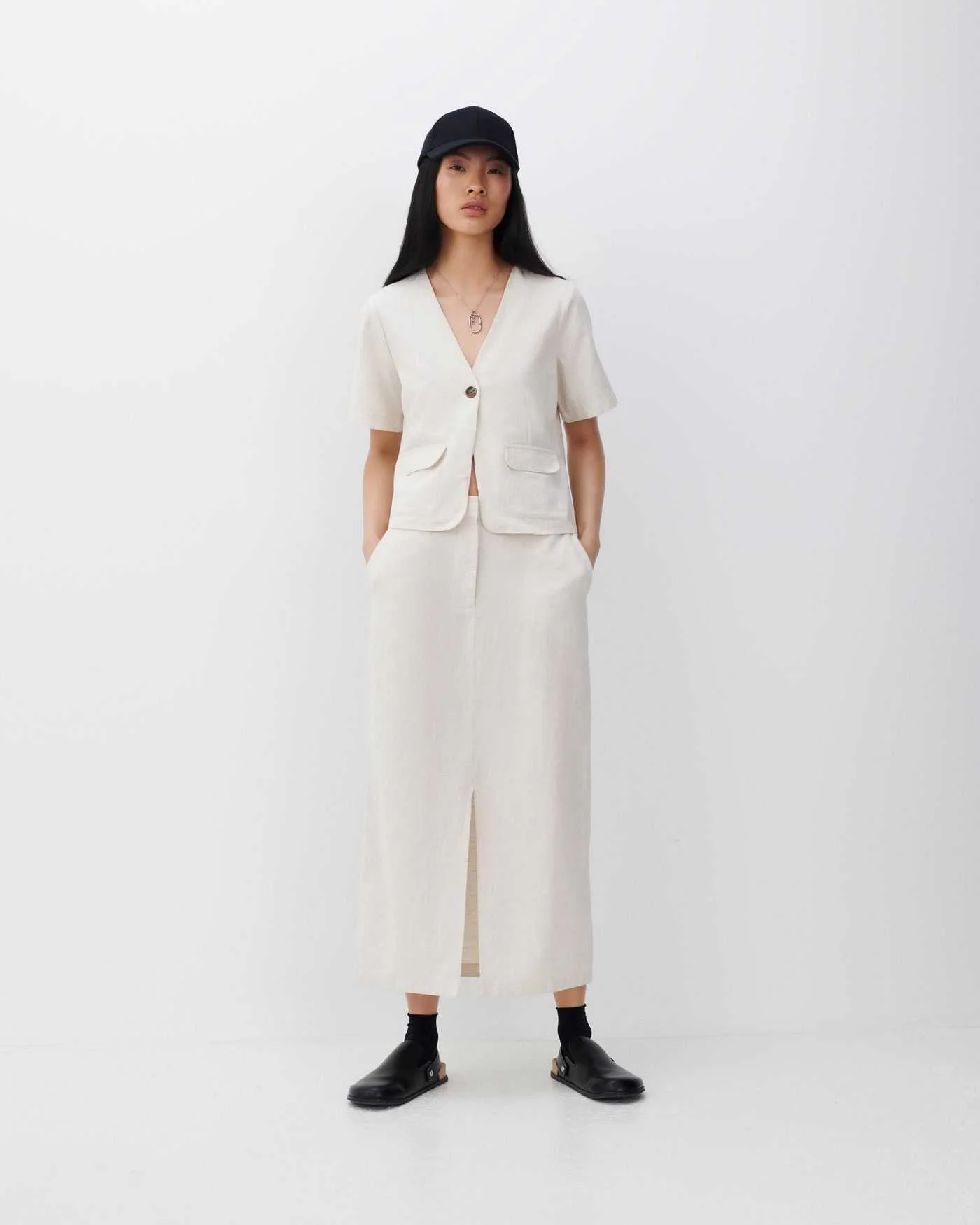 - 50% Viscose LENZING™ECOVERO™; 40% Cotton; 10% Linen