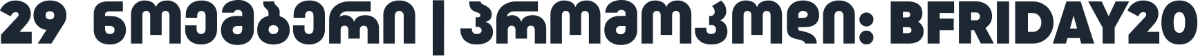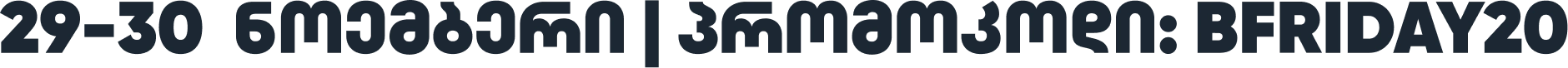 29-30 ნოემბერს, ისარგებლე ორმაგი ფასდაკლებით: 50%-მდე ფასდაკლებით შერჩეულ კოლექციებზე + დამატებით 20%-იანი ფასდაკლებით სრულ კოლექციებზე!