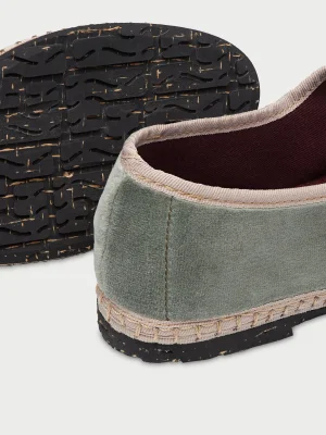 - "ზედაპირი: 100% ბამბა ხავერდოვანი; სარჩული: ანტიბაქტერიული ქსოვილი; ძირი: გადამუშავებული რეზინი."