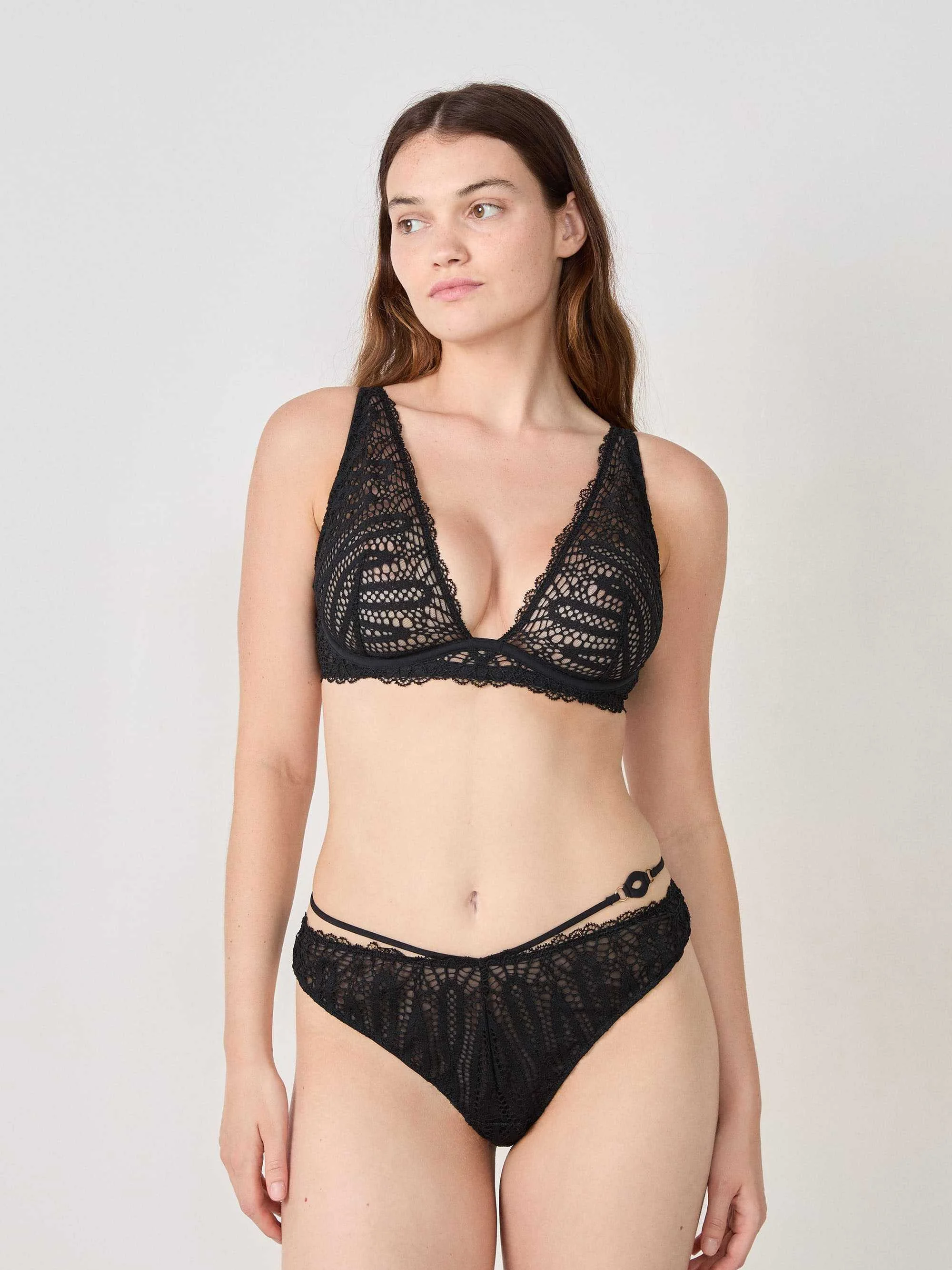 უკანა სარჩული: 100% პოლიესტერი; უკანა სარჩული (D/E/F ფიალები ): 88% პოლიამიდი; 12% ელასტანი; მაქმანი: 95% პოლიამიდი; 5% ელასტანი;
