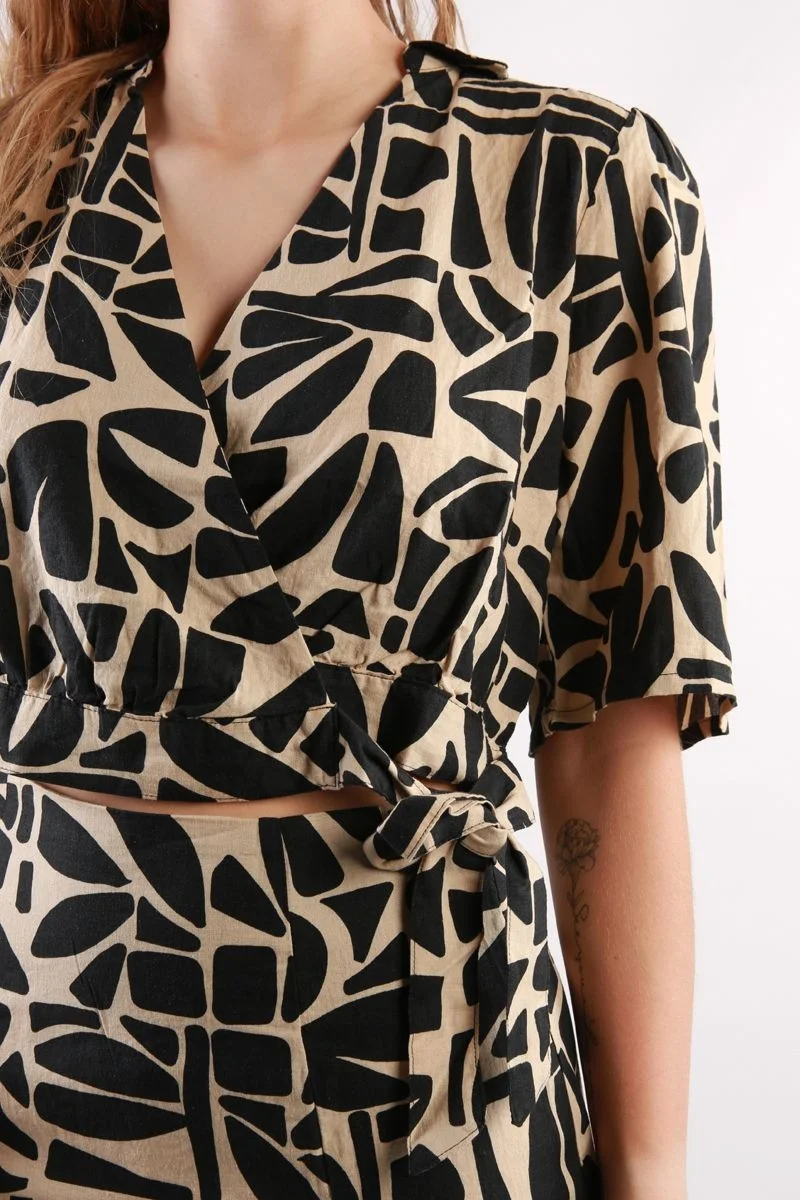 ONLY - ONLDAHLIA LINEN 2/4 WRAP TOP PTM