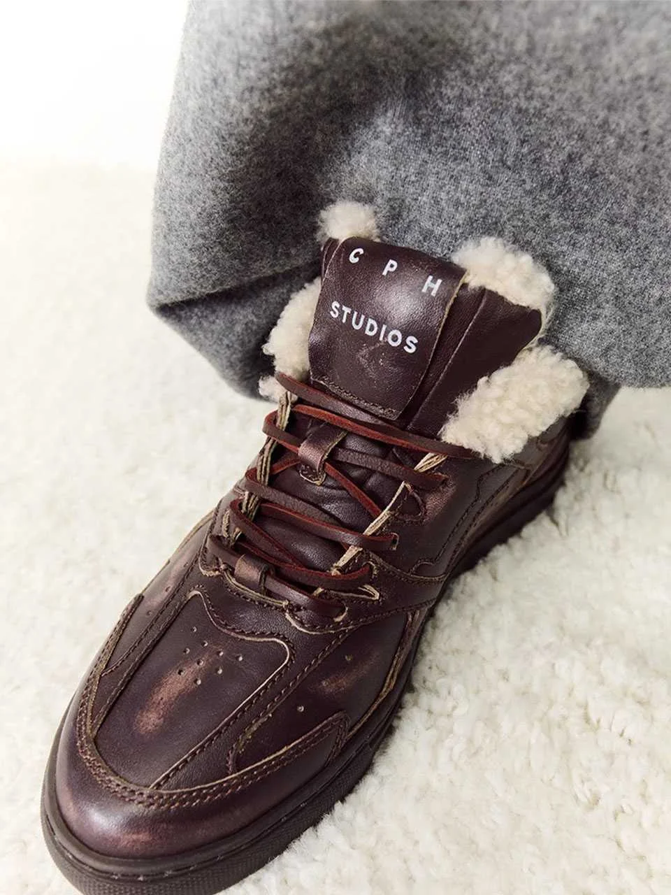 Copenhagen Vintage Leather Teddy Sneakers – ნაზი კრემისფერი ტონის სნიკერები, რომლებიც გრილ დღეებში კომფორტს, სითბოსა და თანამედროვე სტილს აერთიანებს. რბილი, ვინტაჟური იერის მქონე გლუვი ტყავი ერწყმის თბილ ცხვრის ტყავის შიდა საფარს, ხოლო ბრტყელი რეზინის ძირი უზრუნველყოფს კომფორტულ შეგრძნებას მთელი დღის განმავლობაში. ტონალობაში შეხამებული ტყავის თასმები და დისკრეტული ლოგოები ენაზე და გვერდზე ქმნის სუფთა, თბილ და მინიმალისტურ ვიზუალს — მარტივი, მაგრამ არასდროს მოსაწყენი.