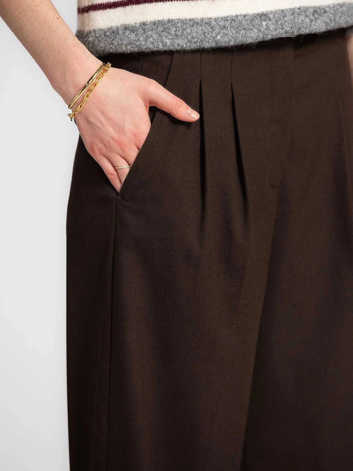 - 49% ვისკოზა - Tangcell™ EcoTang™; 29% პოლიესტერი - გადამუშავებული; 20% შალი - RWS; 2% ელასტანი