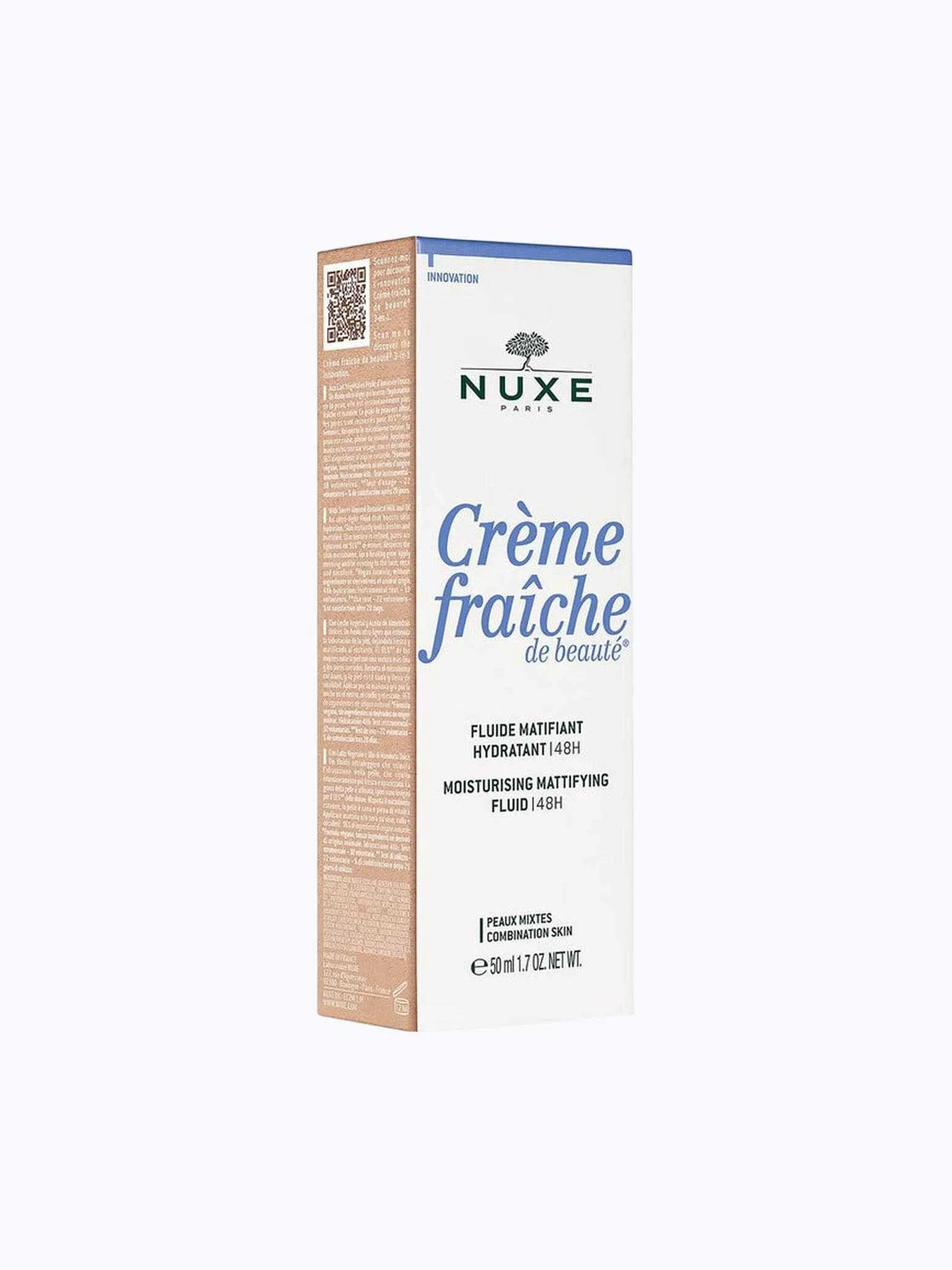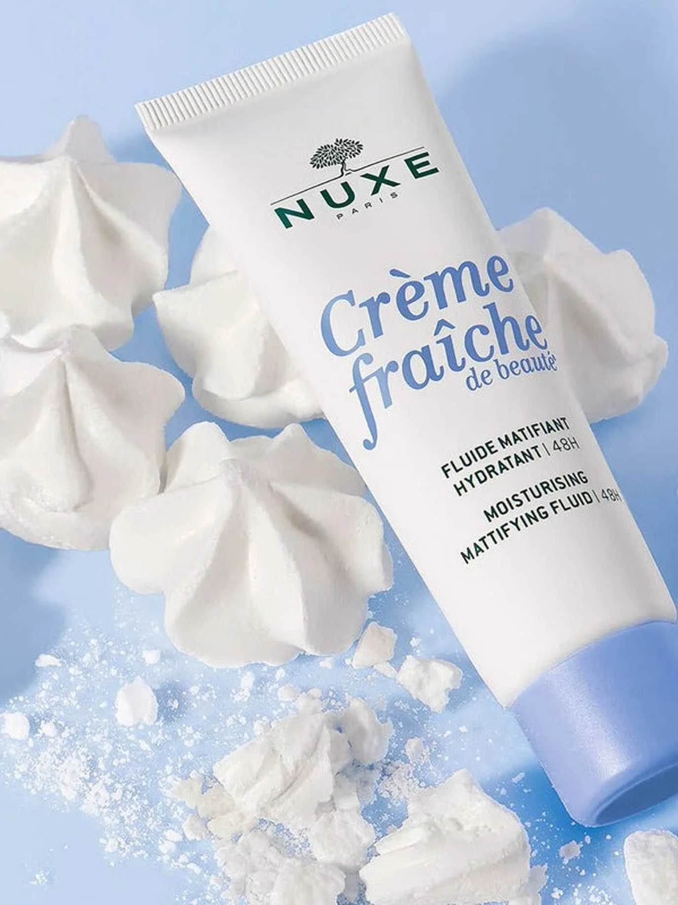 Nuxe Creme Fraiche – 48 საათის განმავლობაში მოქმედი დამატენიანებელი კრემი, რომელიც განკუთვნილია ნორმალური კანისთვის. მისი ფორმულა მცენარეულ რძესა და ტკბილი ნუშის ზეთზე დაფუძნებით აღადგენს კანის მიკრობიომს და ხელს უწყობს ჯანმრთელობასა და სიცოცხლით სავსე იერს.