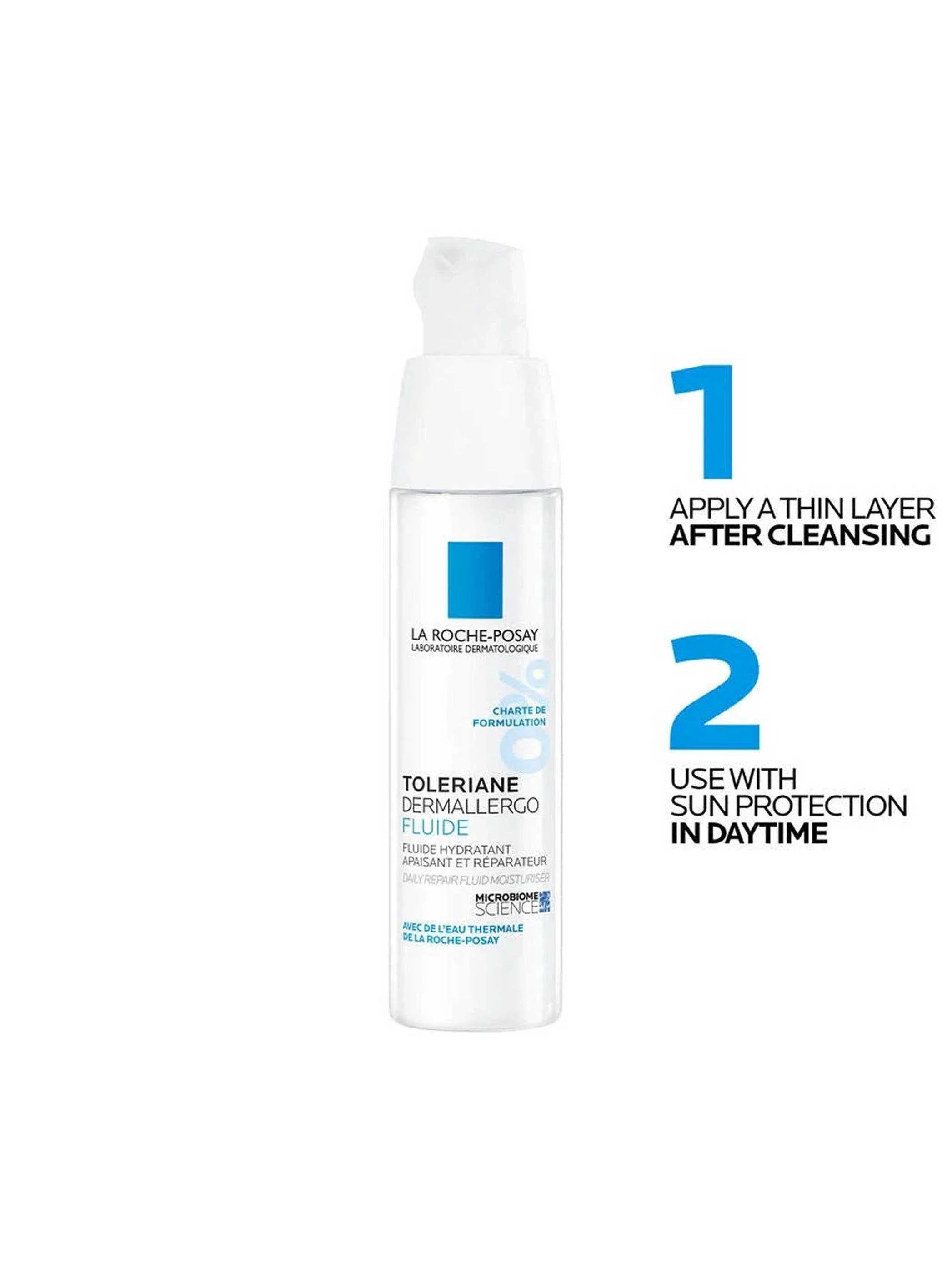 La Roche Posay Toleriane Fluide – ინტენსიურად ატენიანებს და ამშვიდებს ჰიპერმგრძნობიარე, ალერგიისკენ მიდრეკილ კანს, აღადგენს ბარიერულ ფუნქციას და ამცირებს დისკომფორტს.