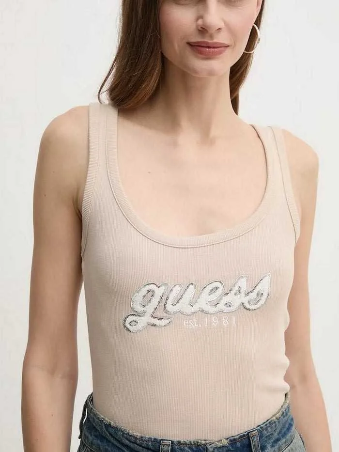 GUESS - CHENILLE LOGO TANK TOP RIB