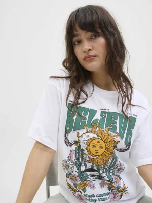 გარეცხეთ მსგავს ფერებთან ერთად, გარეცხეთ შიგნიდან-გარეთ, არ დააუთოოთ დეკორატიული პრინტის ნაწილი