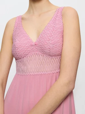 TENCEL™ Modal-ის ქსოვილი უზრუნველყოფს მოხდენილ სილუეტს. მაქმანის ჩანართები ჰმატებს ელეგანტურობასა და კომფორტს სრულყოფილებისთვის.
