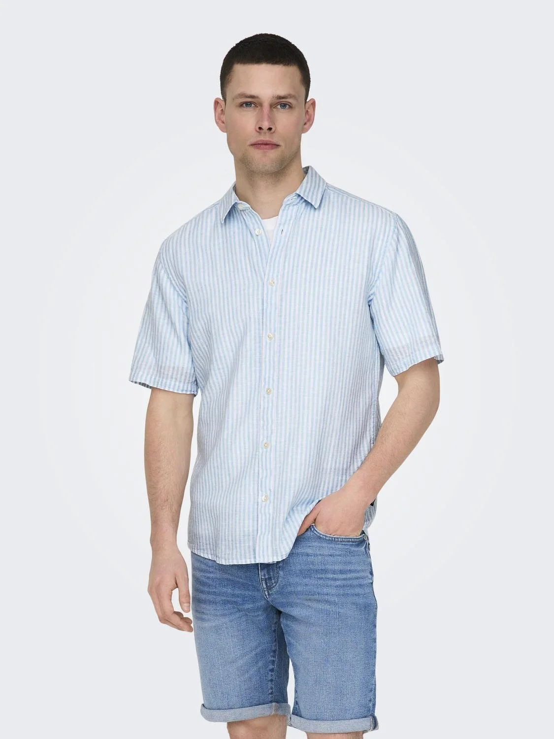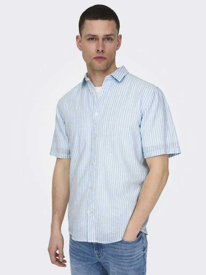 ONLY & SONS - ONSCAIDEN SS STRIPE LINEN SHIRT 841 NOOS