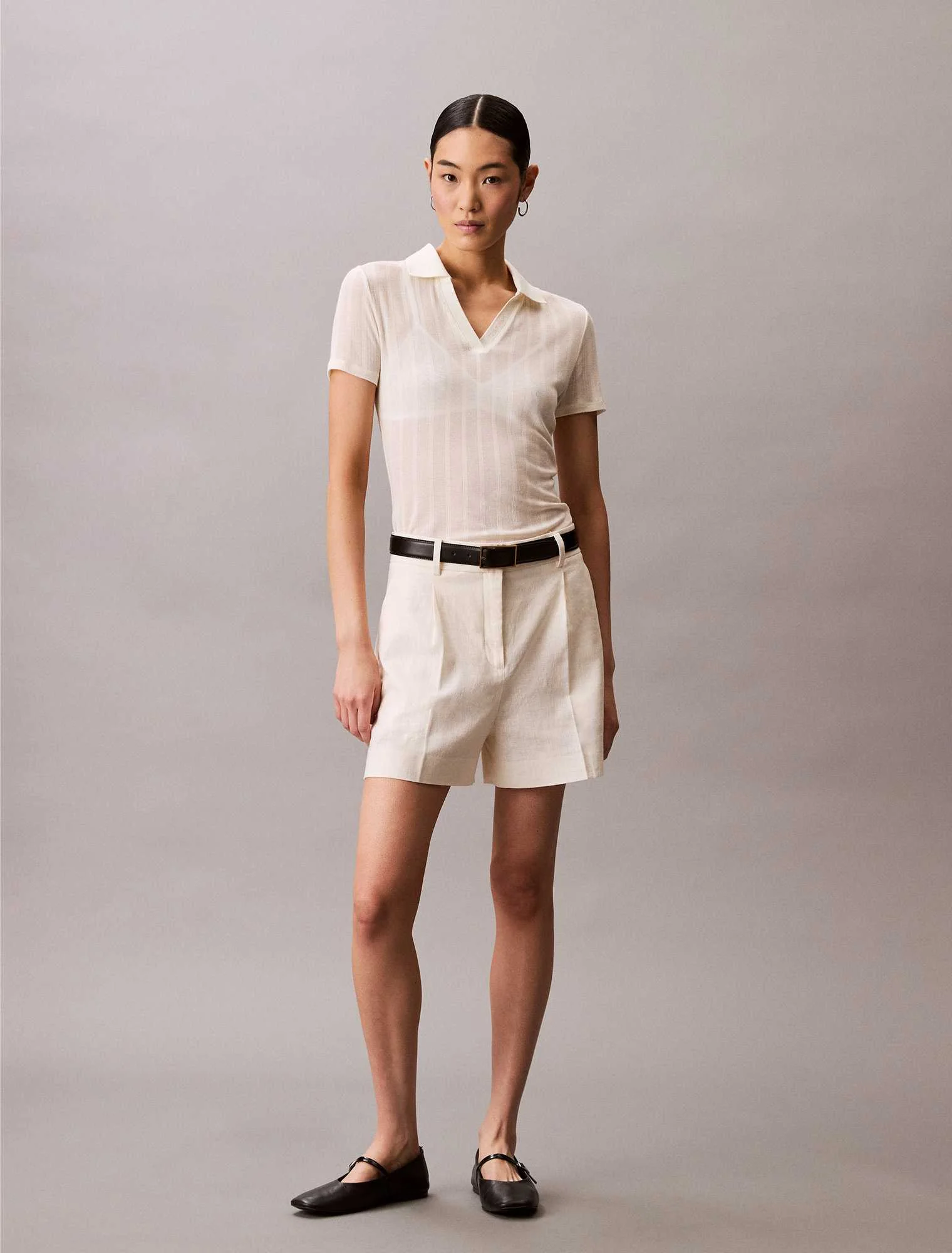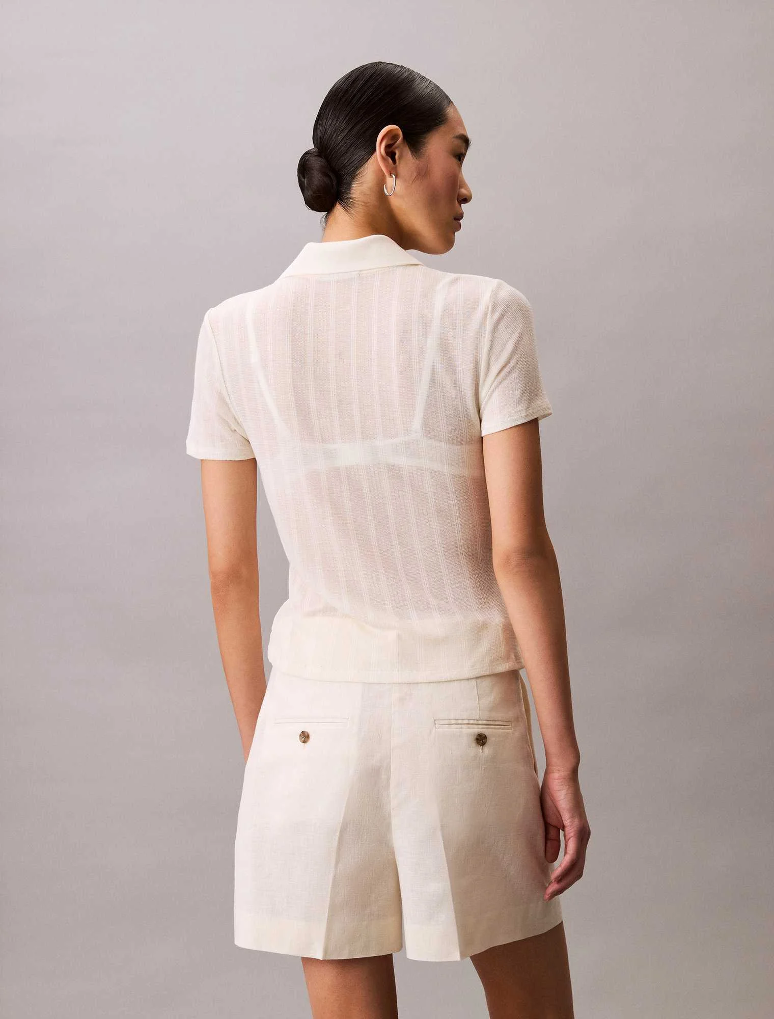 CALVIN KLEIN JEANS - POINTELLE SS POLO TOP