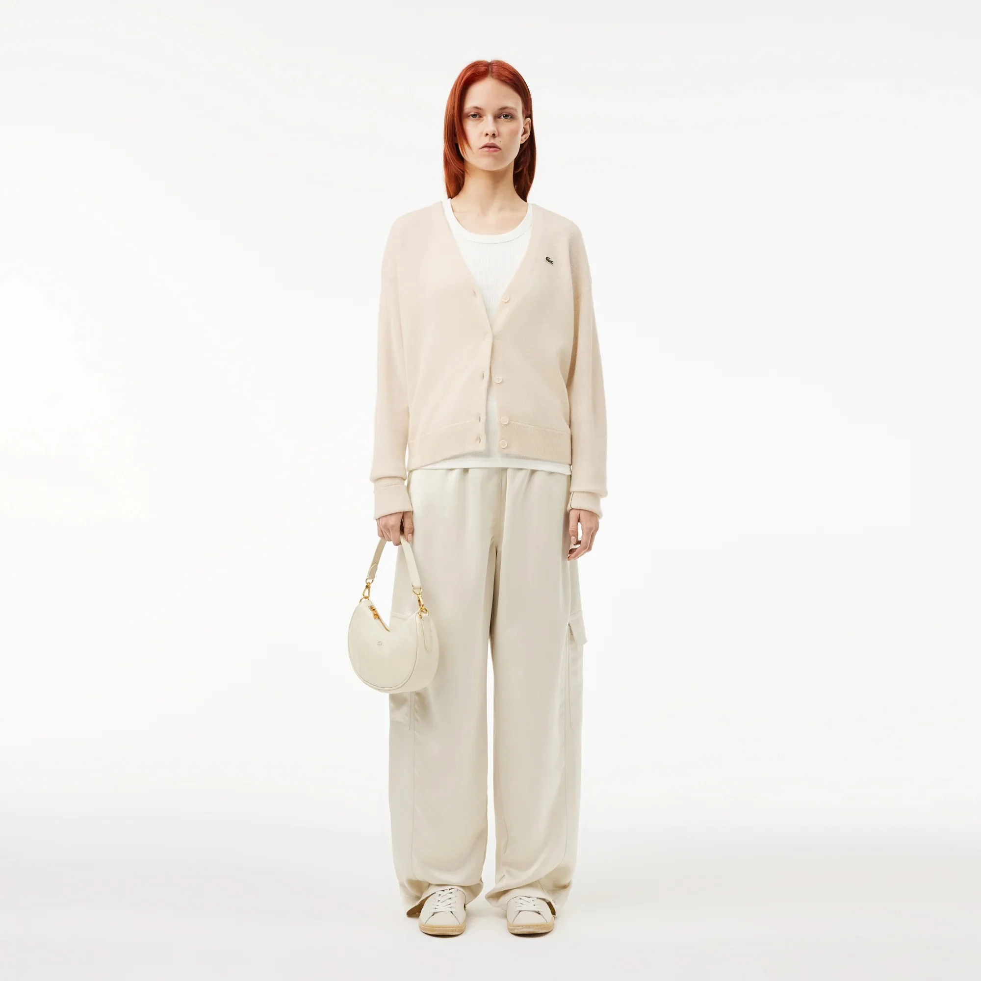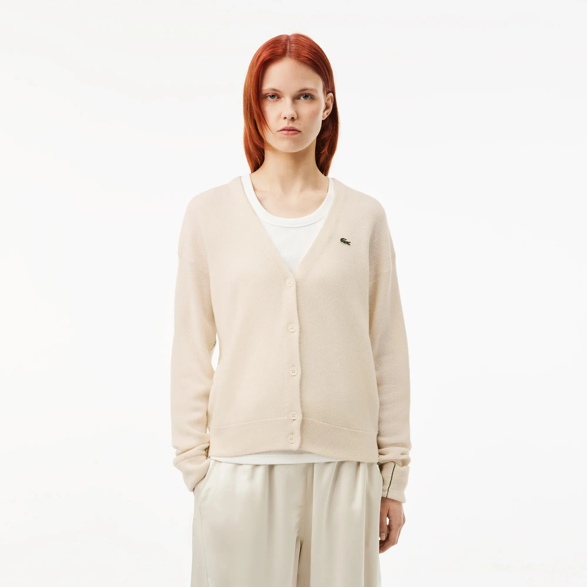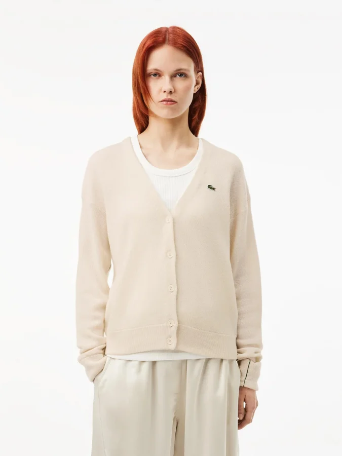 Lacoste - Women's Relaxed Fit V-Neck Wool Cardigan