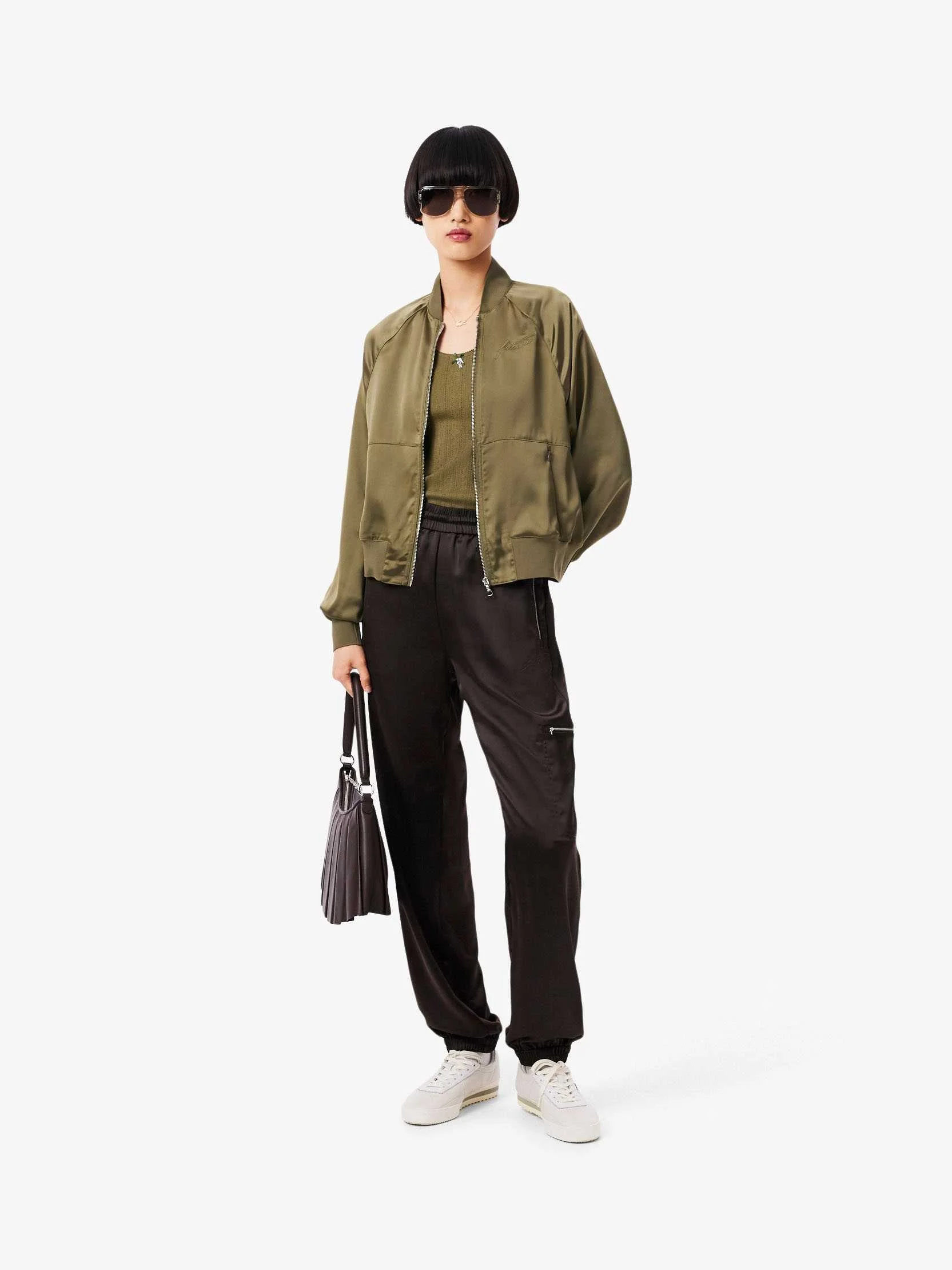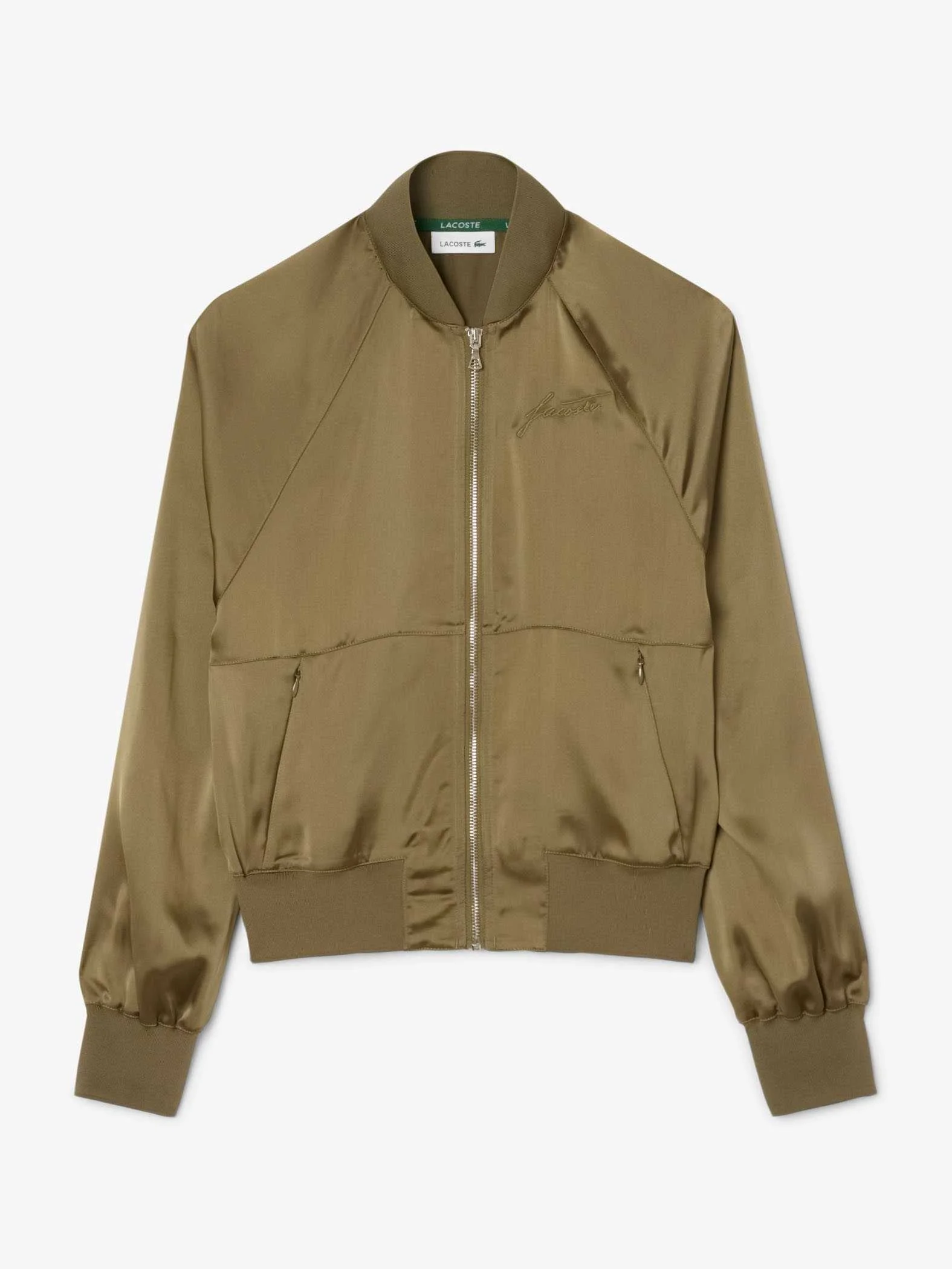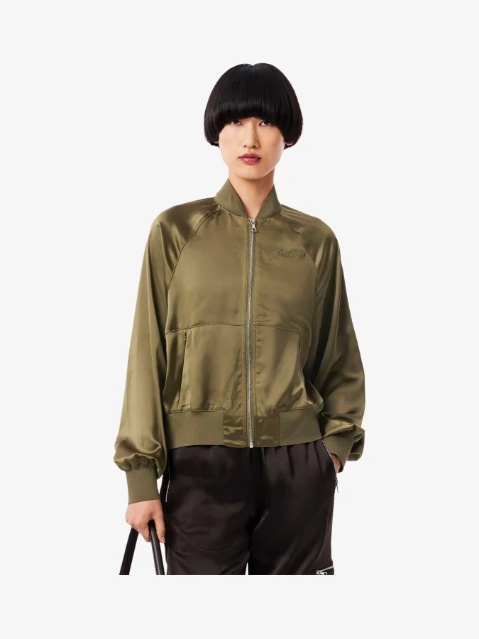 Lacoste - Oversized Embroidered Signature Satin Bomber Jacket