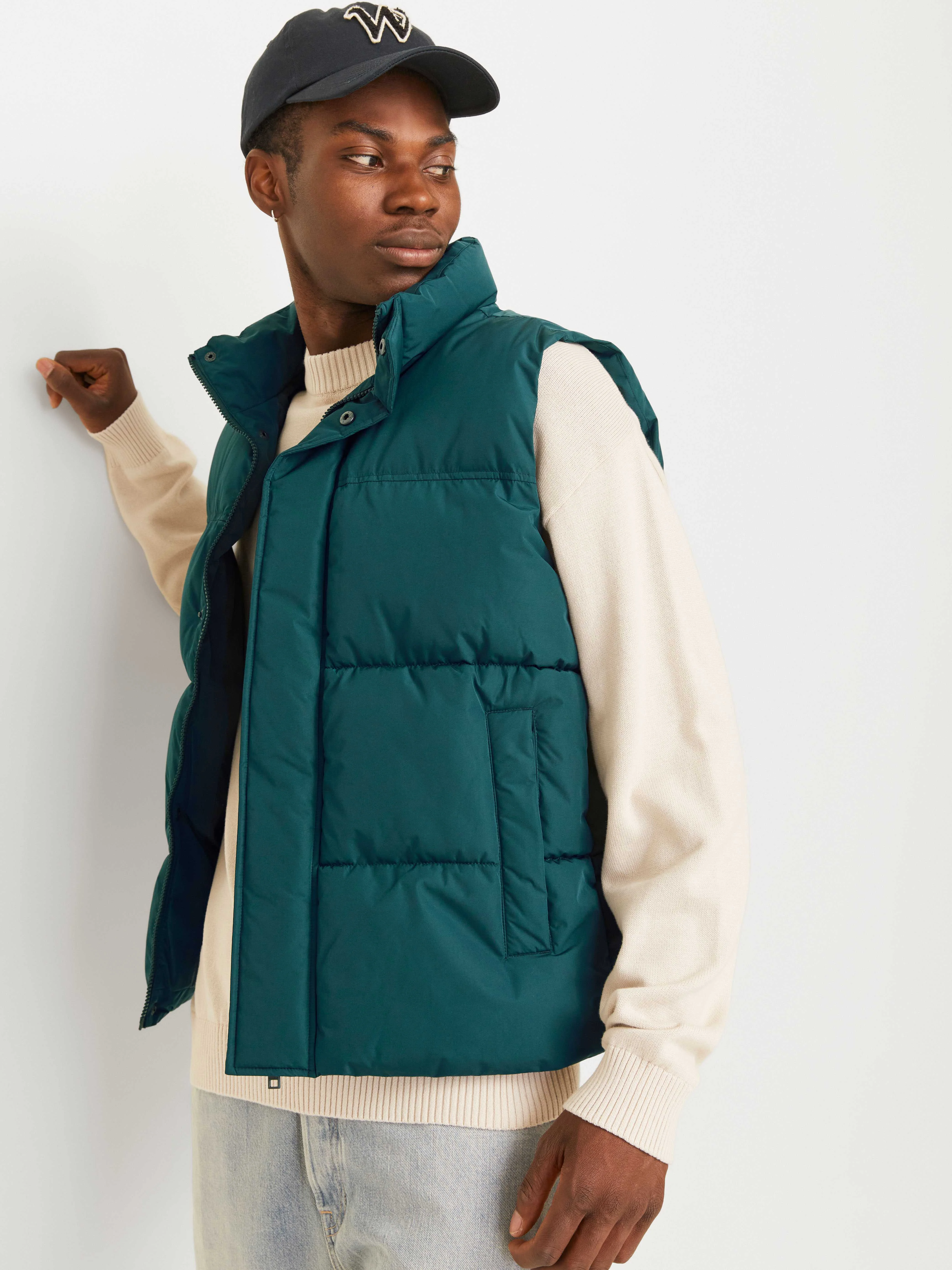 Jack & Jones Puffer Gilet – უნივერსალური და კომფორტული ჟილეტი, რომელიც მარტივად ეწყობა როგორც მაისურს, ისე ჰუდს ამინდის მიხედვით. დამზადებულია quilt მატერიისგან, რომელიც სითბოს ინარჩუნებს და მსუბუქ იზოლაციას უზრუნველყოფს. მოდელს აქვს მაღალი საყელო და ელვა დახურვა, რაც იცავს სიცივისგან, ხოლო წინა ჯიბეები ფუნქციურ ელემენტს ამატებს. პოლიესტერის შიდა საფარი და შევსება უზრუნველყოფს თბილ, მაგრამ მსუბუქ კომფორტს ყოველდღიური ტარებისთვის.