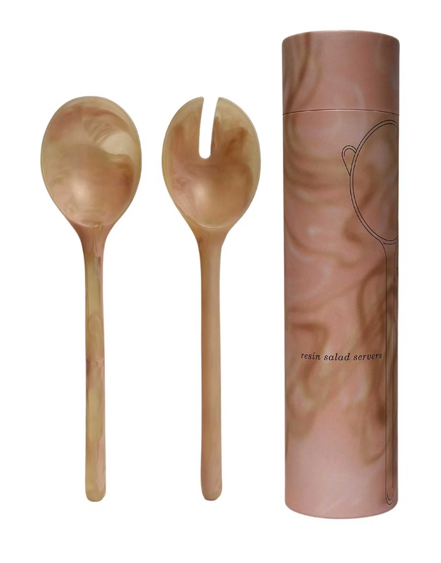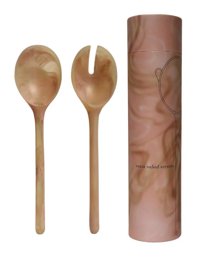 MÆGEN Salad Server Peach – მარმარილოსებრი მორევებით შექმნილი უნიკალური დიზაინის სალათის ატრიბუტები. სძენს სუფრას ელეგანტურ იერს. თითოეული კომპლექტი ხელნაკეთი და განსაკუთრებულია.