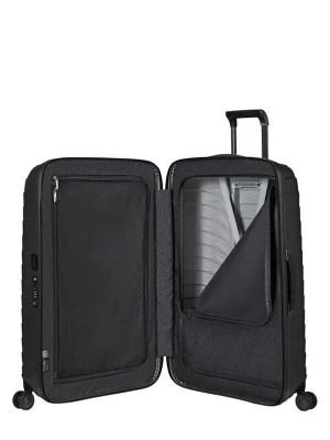 Samsonite Proxis 86/33 – ახალი ეპოქა მოგზაურობაში. გარე კორპუსი დამზადებულია Roxkin მასალისგან – ეს არის ექსკლუზიური, მრავალფენიანი სტრუქტურა, რომელიც უბრუნდება საწყის ფორმას, გამოირჩევა გამძლეობით, ელასტიურობით და სიმსუბუქით. დახვეწილი დიზაინი ასხივებს თავდაჯერებულობას და სრულად აკმაყოფილებს ყველა სამოგზაურო საჭიროებას.