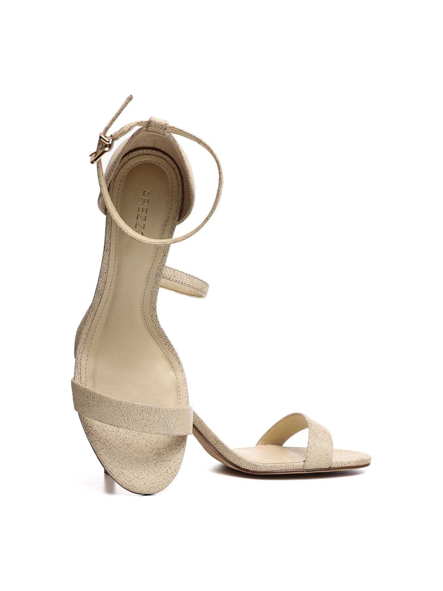 Arezzo - Cream Leather Sandal with Thin Medium Heel