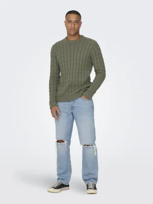 ONLY & SONS - ONSKICKER LIFE REG 3 CABLE CREW KNIT