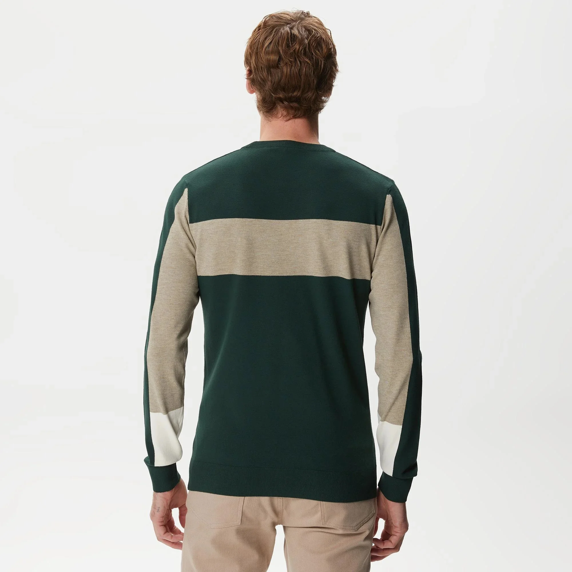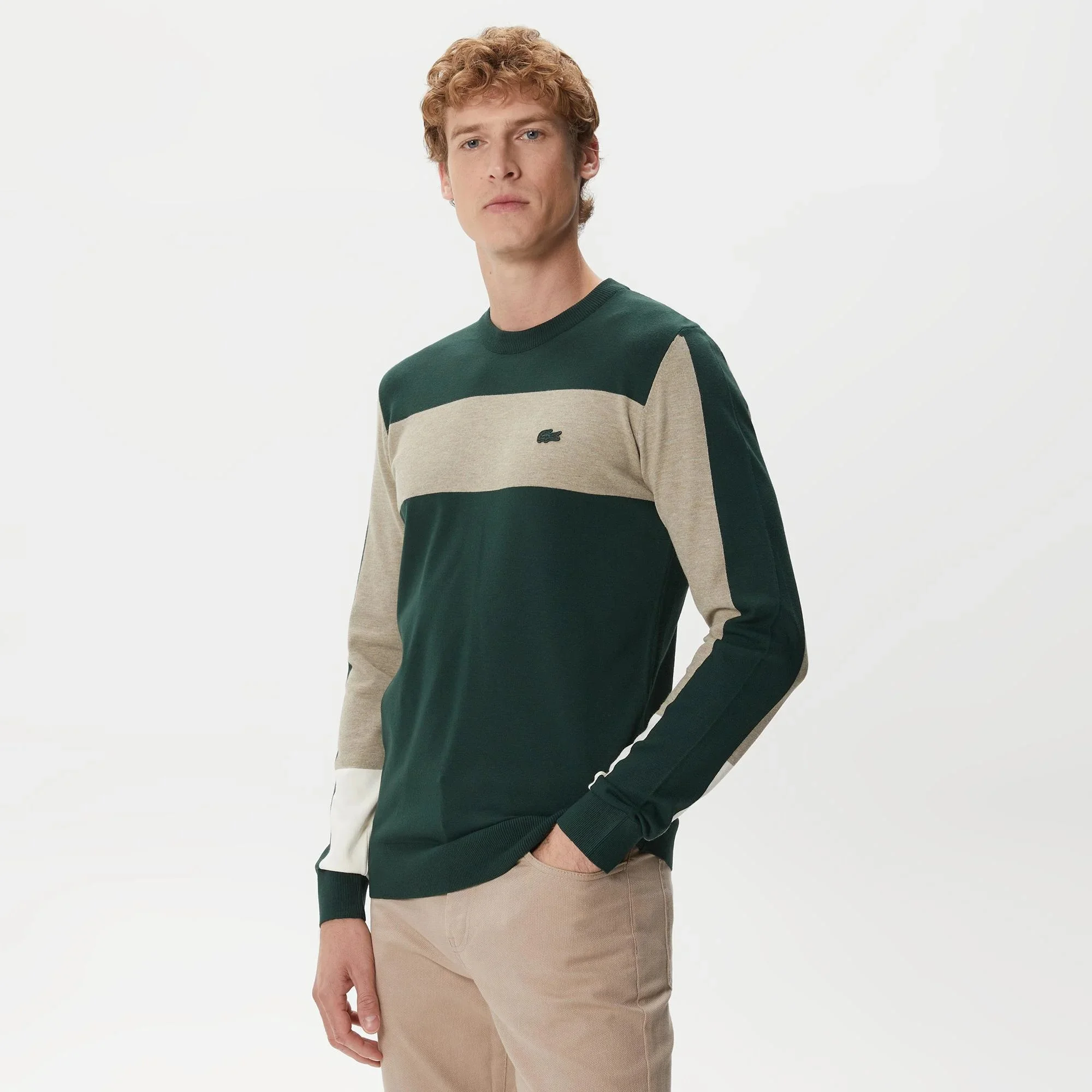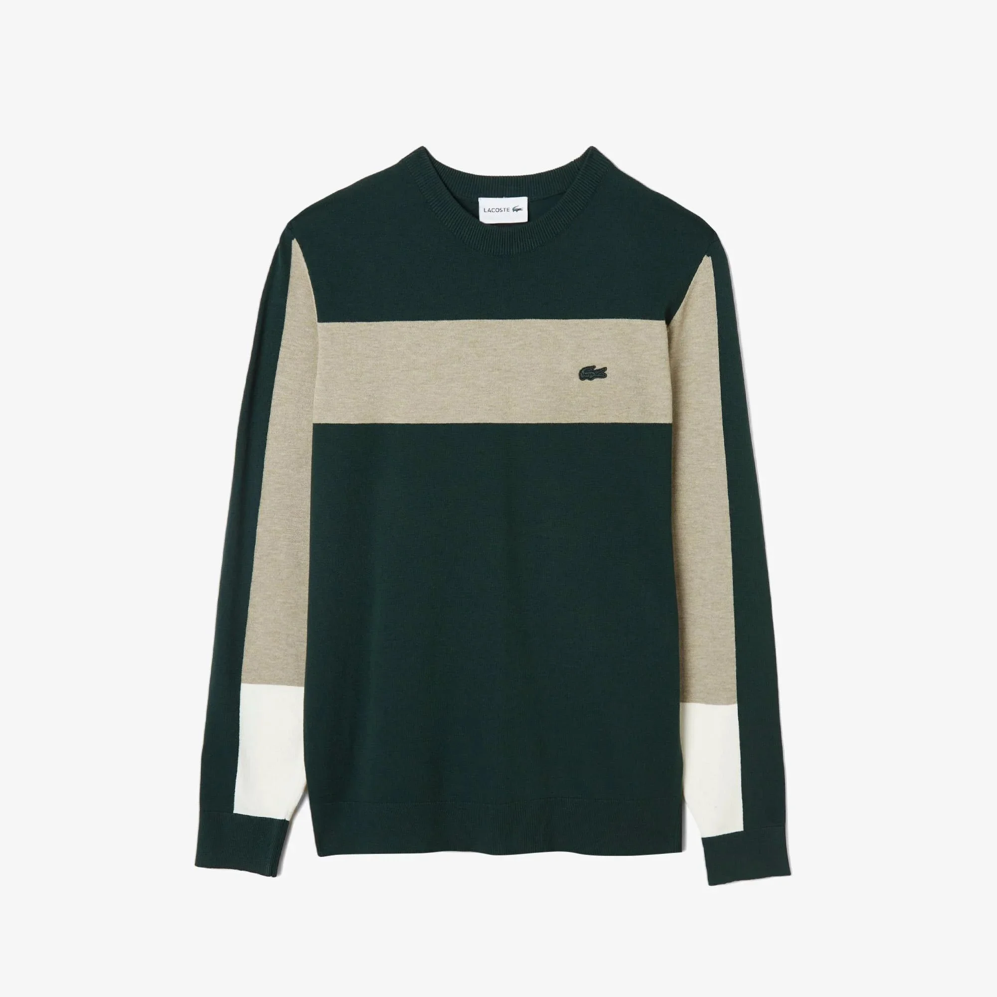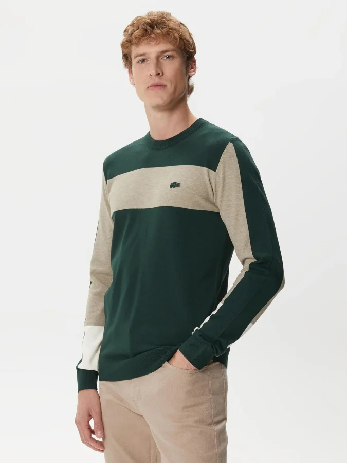 Lacoste - Lacoste Men's Regular Fit Crew Neck Color Blocked Green Knitwear