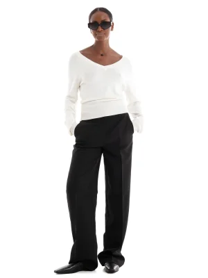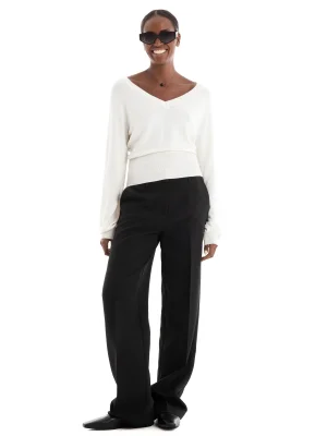 არცერთი გარდერობი არ არის სრულყოფილი რბილი, ყოველდღიური სტილის სამოსის გარეშე, რომელიც იდეალურია ნებისმიერი შემთხვევისა და სეზონისთვის. ეს ნაქსოვი პულოვერი გამოირჩევა ელეგანტური V-ყელითა და ტრენდული მოცულობითი სახელოებით.