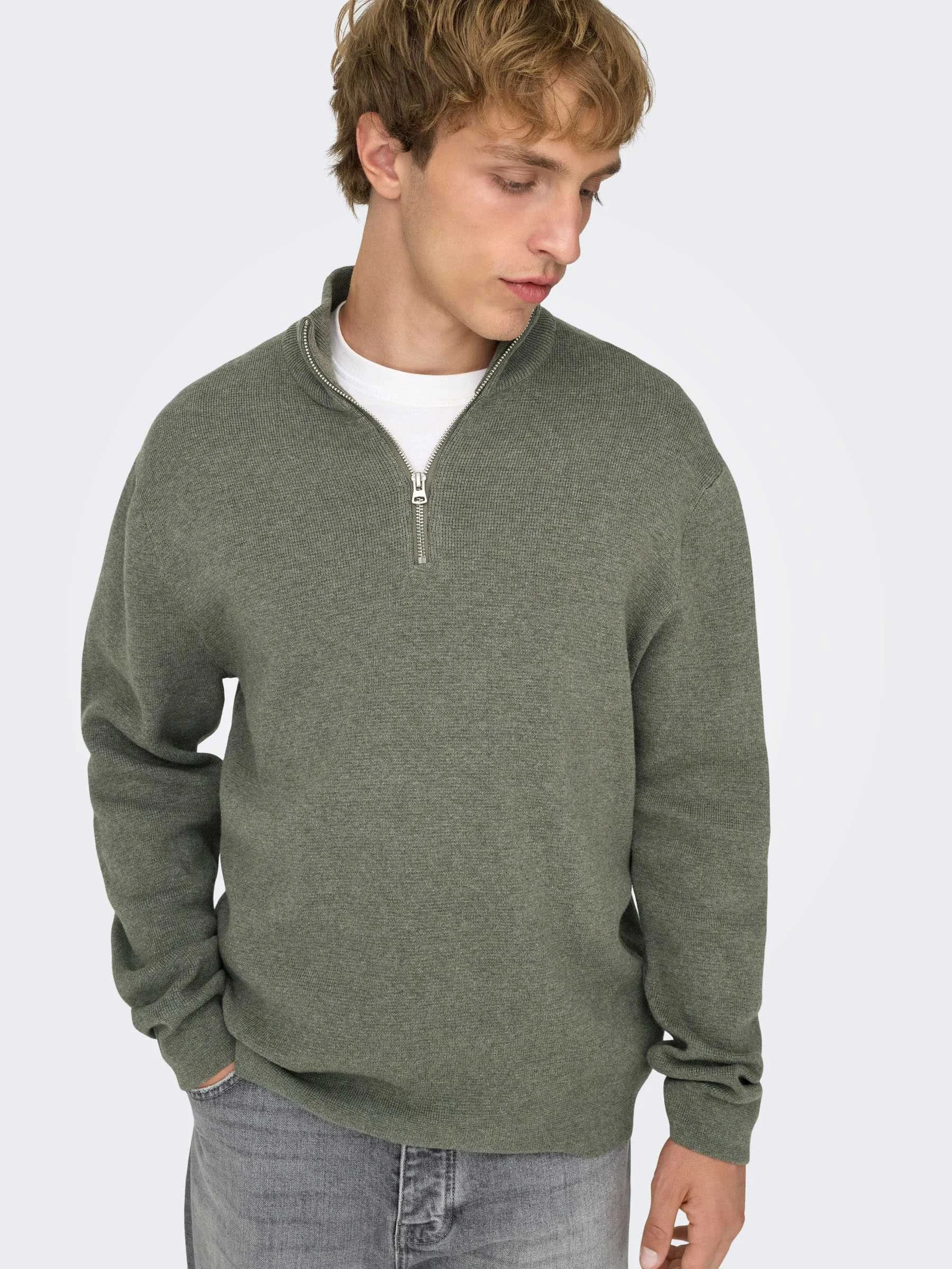 ONLY & SONS - ONSTING LIFE REG HALF ZIP KNIT NOOS