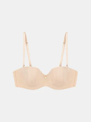 რეგულირებადი და მოხსნადი ბრეტელები გვაძლევს ტარების რამდენიმე ვარიანტს: კისერზე შეკვრის, გადაჯვარედინების ან დიაგონალურად შეკვრის. ის სრულიად უხილავია ტანსაცმლის ქვეშ, მისი რბილი კიდეები კი უზრუნველყოფს კომფორტს მთელი დღის განმავლობაში. მას ამშვენებს ოქროსფერი დეტალები, რომლებიც პრემიუმ იერს მატებს.