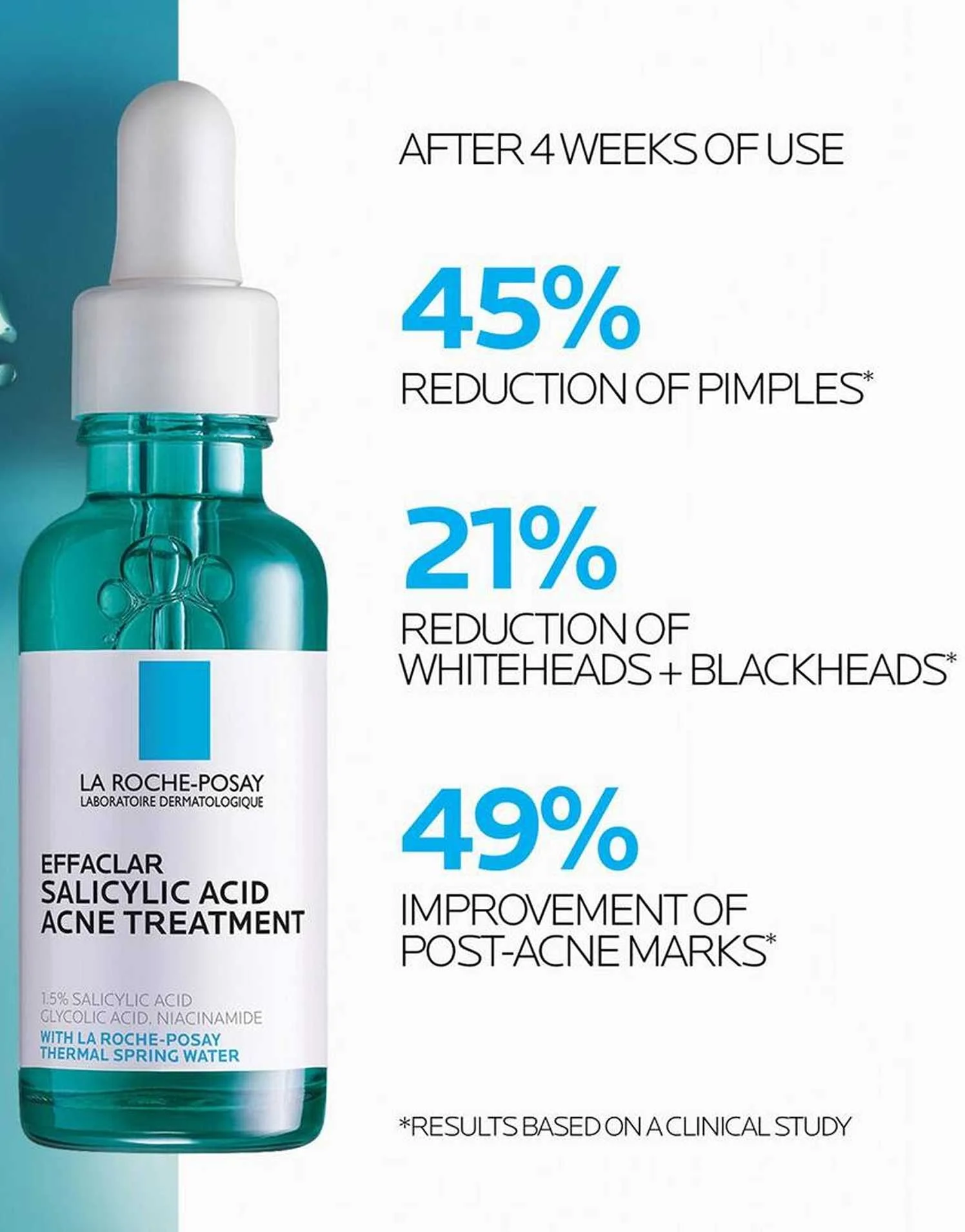 - 49%-ით აუმჯობესებს პოსტ-აკნეს ნიშნებს 4 კვირაში