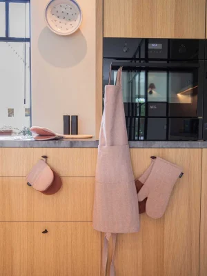 Tiseco Oven Glove RUGA – Set of 2 – 18x32 cm, Cognac – RUGA სერიის ღუმელის ხელთათმანები თქვენს სამზარეულოში სტილსა და დაცვას აერთიანებს. ელვისებური ნაქსოვი ორნამენტი და სილიკონის წერტილები უზრუნველყოფს მყარ დაჭერას და სიცხისგან ოპტიმალურ დაცვას. მაღალი ხარისხის ბამბის მასალა კომფორტსა და გამძლეობას იძლევა. მოსახერხებელი მარყუჟი მარტივ შენახვას შესაძლებელს ხდის. იდეალურად ერწყმის RUGA სერიის წინსაფარსა და გრიპერს სრულყოფილი კომპლექტისთვის.
