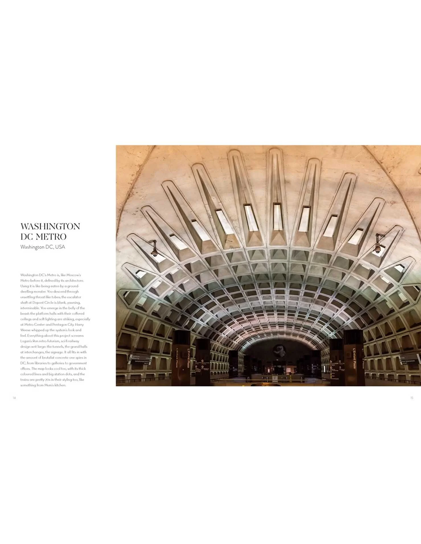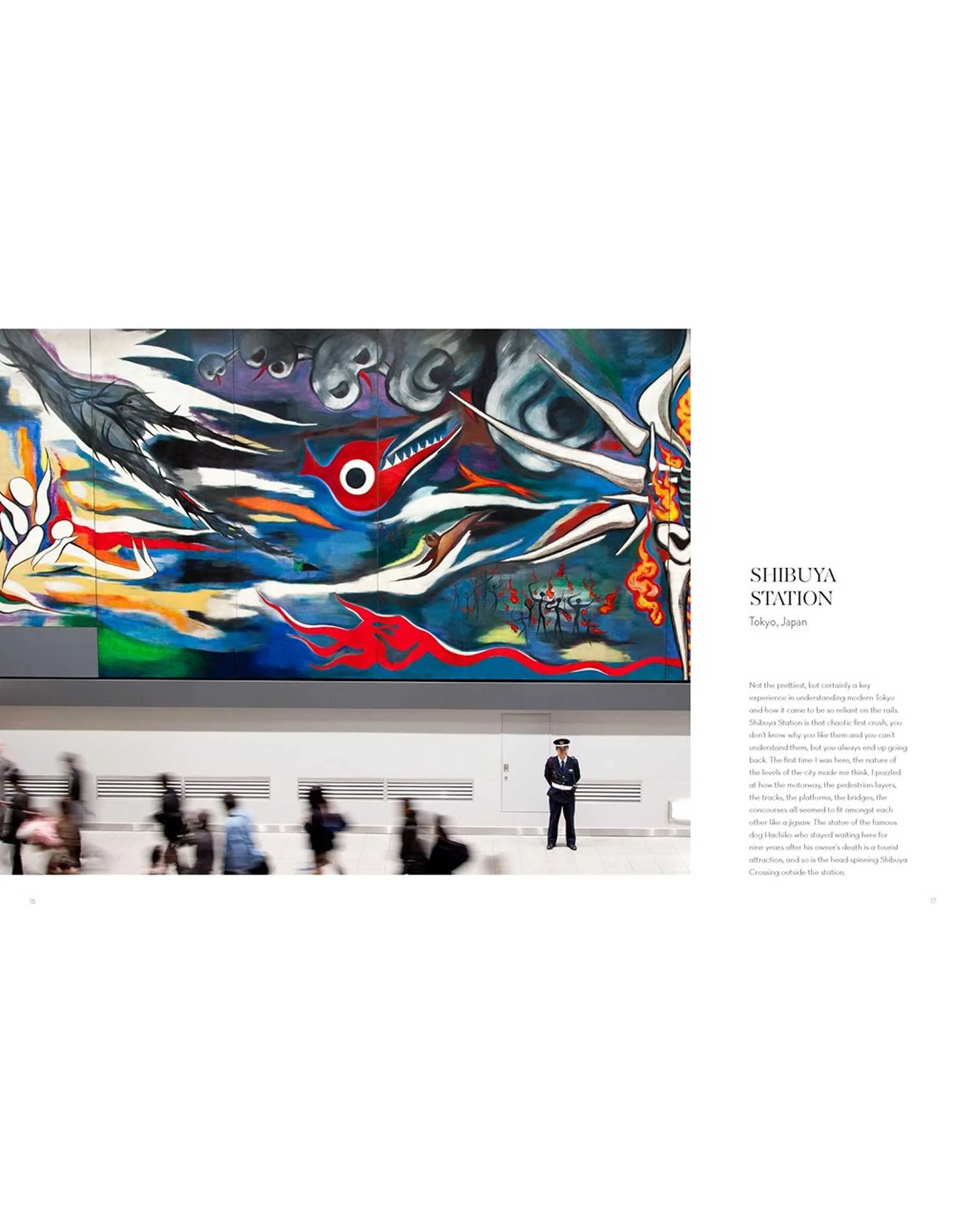 წიგნი იკვლევს კარგად ცნობილ ბერლინის ჰაუპტბანჰოფს (Hauptbahnhof), მადრიდის ატოჩას სადგურს (Atocha Station) და ნიუ-იორკის სრულიად ახალ პენის სადგურის დარბაზს (Penn Station Hall), თუმცა ასევე მოიცავს ნაკლებად ცნობილ მაგალითებს, როგორიცაა მაღალსიჩქარიანი სადგურები საუდის არაბეთში, დიუსელდორფის ხელოვნების ტრამვაის ხაზი (Düsseldorf Art Tram line) და უოლტ დისნეის სამყაროს მონორელსებიც კი (monorails at Walt Disney World). ის შეიცავს სიღრმისეულ სტატიებს ხელახლა გამოყენებულ ურბანულ სარკინიგზო ინფრასტრუქტურაზე, გერმანიასა და იაპონიაში დაკიდებულ რკინიგზებზე და ღამით მოგზაურობის იდუმალ გლამურზე. ასევე წარმოდგენილია ინტერვიუები საინტერესო ადამიანებთან, რომლებიც რეგულარულად იყენებენ ამ საკულტო შენობებსა და რკინიგზებს.