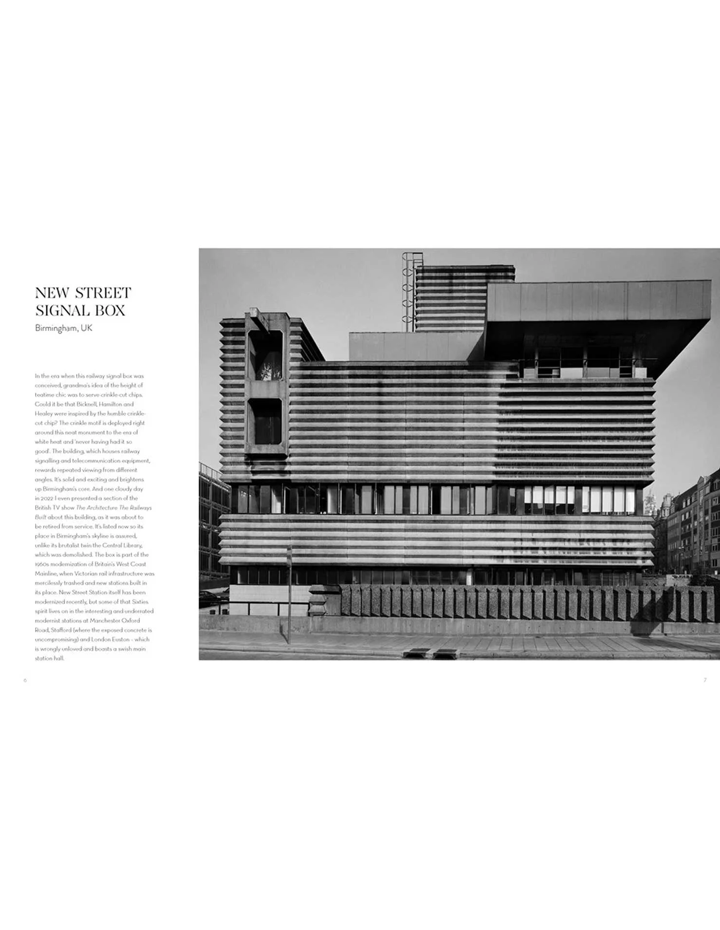 ბევრი სარკინიგზო წიგნი ორთქლის ხანის ნოსტალგიას ეძღვნება, მაგრამ ეს წიგნი განსხვავებულია: რკინიგზის არქიტექტურის გლობალური კვლევა 1950-იანი წლებიდან დღემდე და მომავალში. 50 მომხიბვლელ თავში, ცნობილი მოგზაურობისა და არქიტექტურის მწერალი კრისტოფერ ბინლენდი (Christopher Beanland) ძირითადად სადგურებს განიხილავს, თუმცა ასევე მოიცავს მკაცრად ბრუტალისტურ სასიგნალო ყუთებსა და დეპოებს, რომანტიკულ და კოსმოპოლიტურ სარკინიგზო სასტუმროებს, მოხდენილ და გამარტივებულ სატრანსპორტო კვანძებს, ასევე შესანიშნავი ლოგოებისა და დიზაინის საერთაშორისო მაგალითებს.
