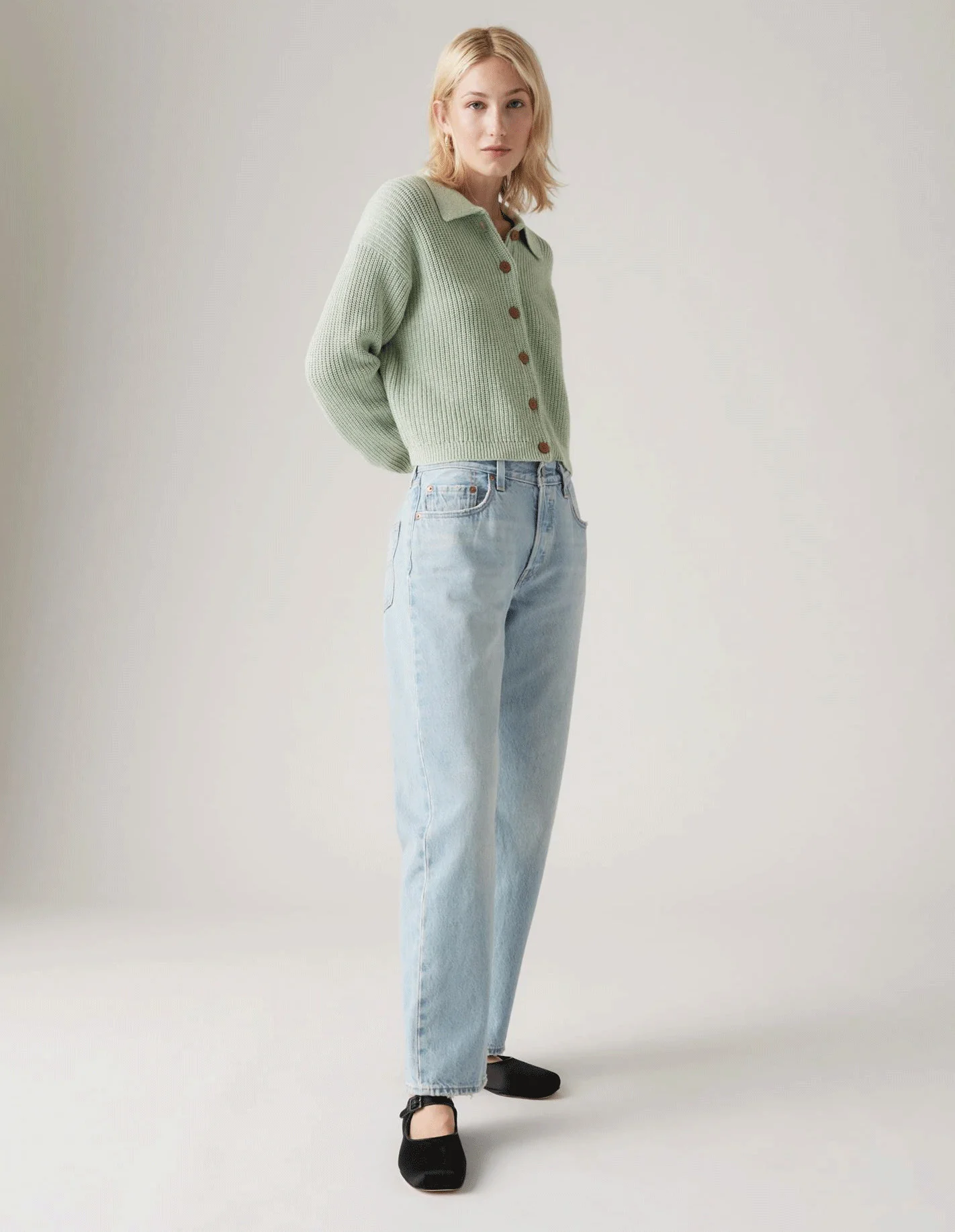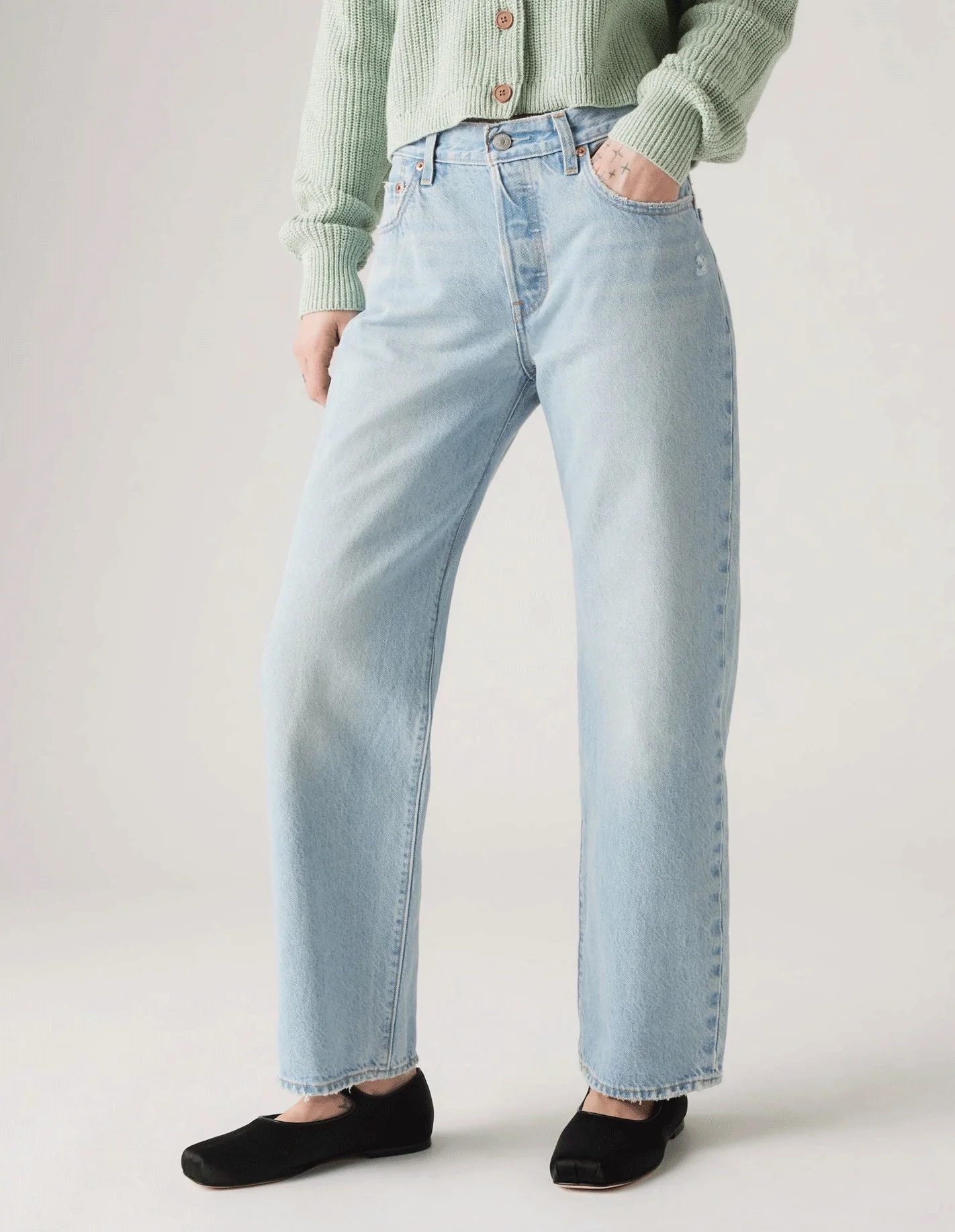 საშუალო წელის სიმაღლით, ტერფამდე სიგრძითა და თავისუფალი, გამართული ჭრილით შექმნილი ჯინსი იდეალურად ერწყმის ყოველდღიურ სტილს. მცირედი თავისუფლება ფეხებზე და ვინტაჟური ესთეტიკა მას თქვენს გარდერობში შეუცვლელ ელემენტად აქცევს.