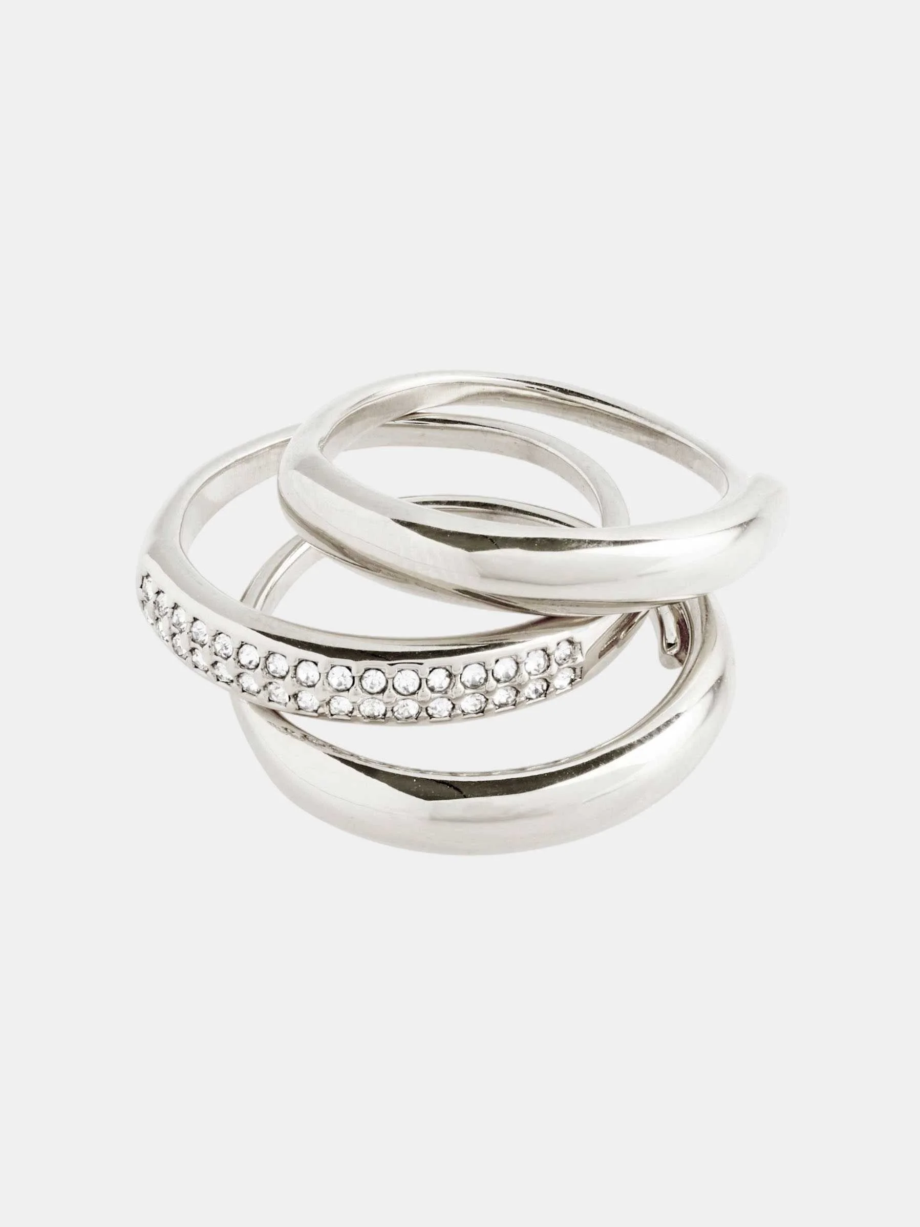 Pilgrim - BLOOM recycled crystal ring, 3-in-1 set, silver-plated