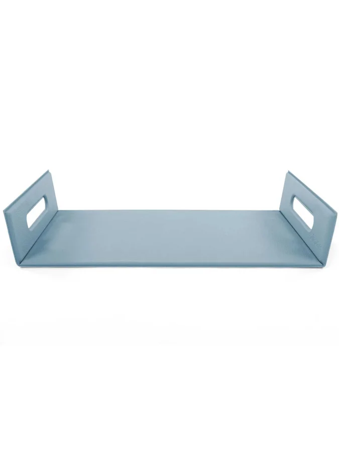 Tiseco Tray TOGO – 33x45 cm + 2x6 cm, stone Blue – პრაქტიკული და მრავალფუნქციური ლანგარი, რომელიც ერთდროულად შეიძლება გამოყენებულ იქნას როგორც სერვირების თეფშად, ასევე სუფრის დასაფარად. ინოვაციური დიზაინი კომბინაციას უკეთებს ესთეტიკას და ფუნქციონალს, ხოლო მატი ზედაპირი კომფორტს და უსაფრთხოებას უზრუნველყოფს. მარტივად იწმინდება და ინახება.