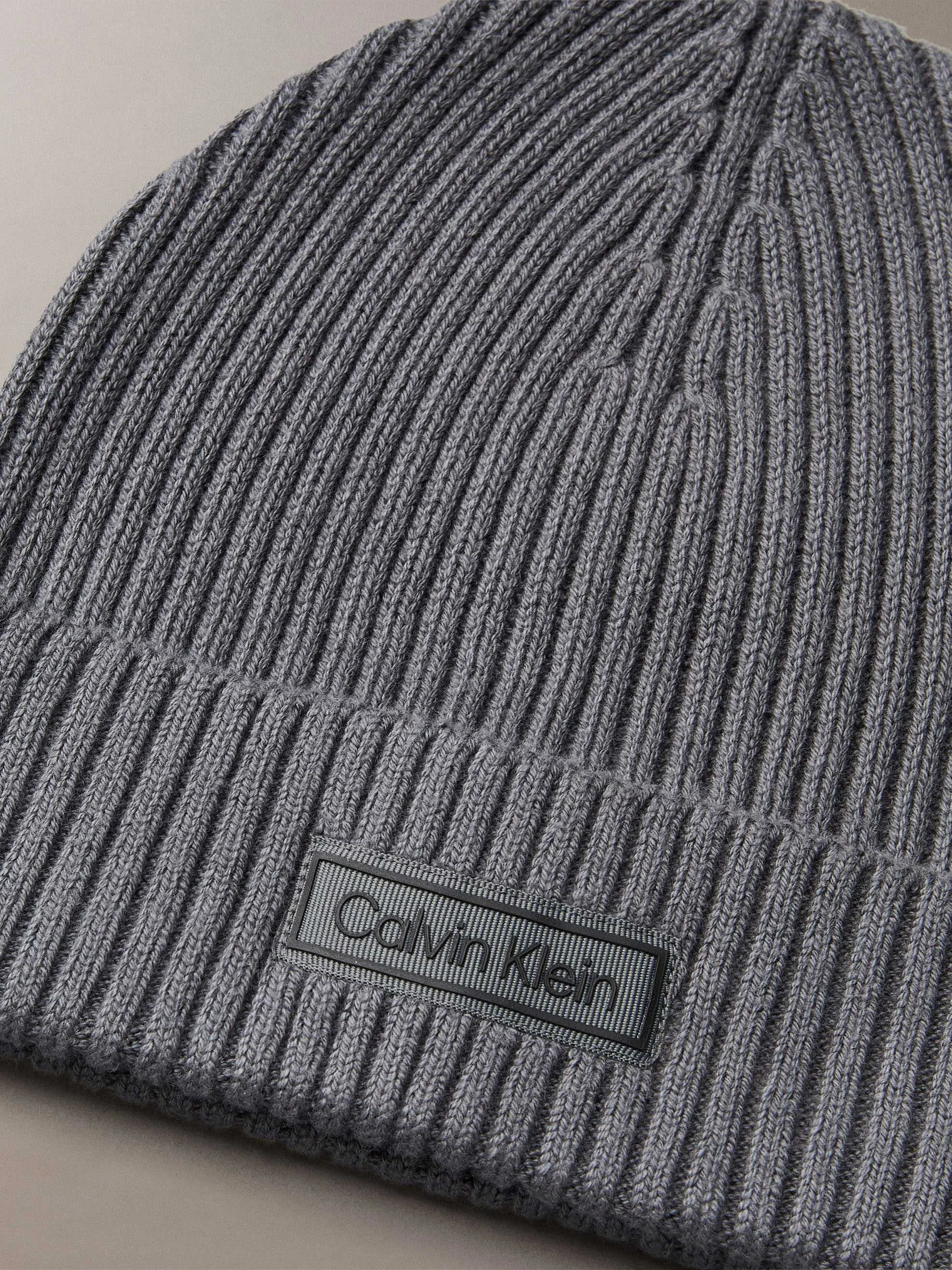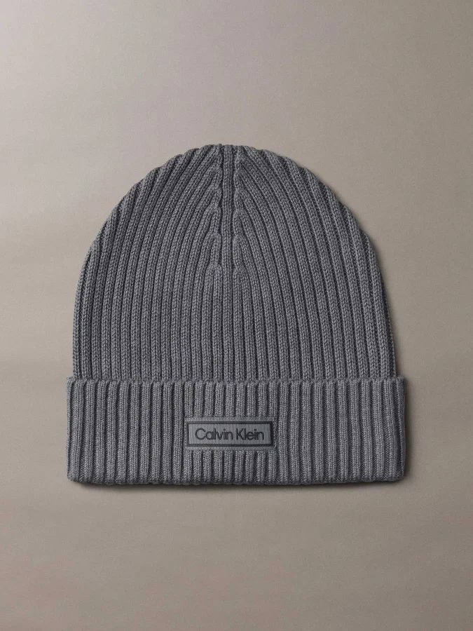 CALVIN KLEIN - PATCH CHUNKY RIB COTTON BEANIE