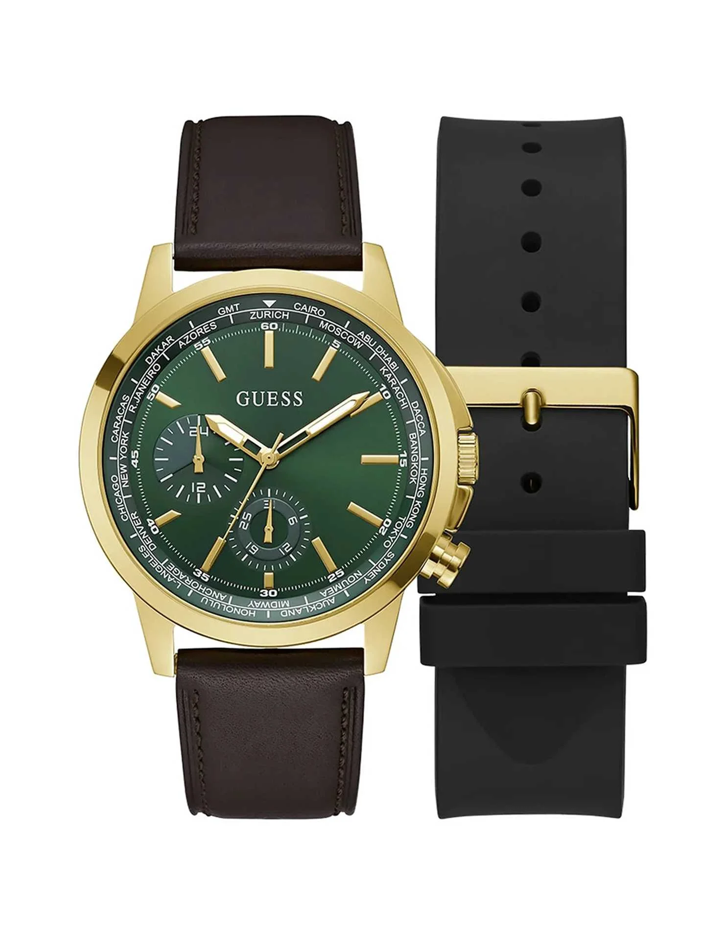 კორპუსის მასალა: უჟანგავი ფოლადი; სამაჯური: ტყავი/სილიკონი