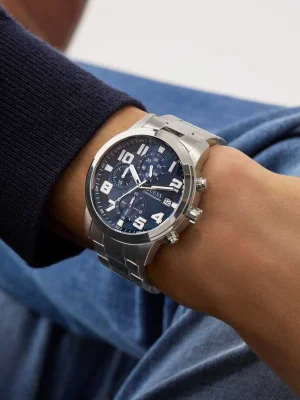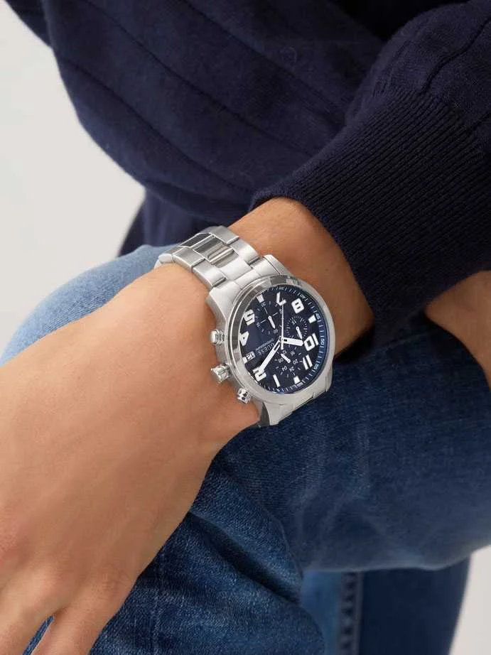 კორპუსის მასალა: უჟანგავი მეტალი; სამაჯური: ტყავი/სილიკონი