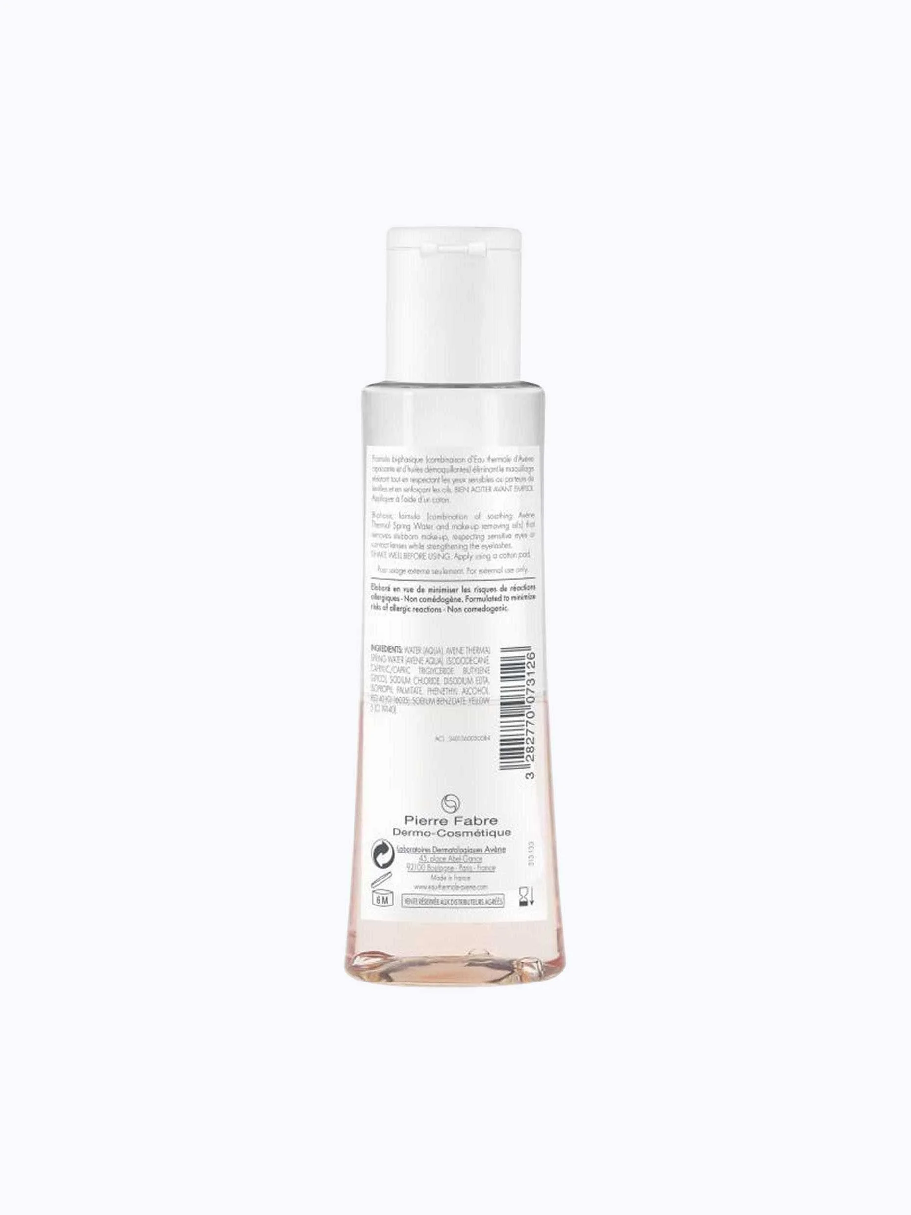 Avene Les Essentiels – ინტენსიური თვალის მაკიაჟის მოსაშორებელი სენსიტიური თვალებისთვის, რომელიც იდეალურად შეეფერება კონტაქტური ლინზების მატარებლებს. ეფექტურად აშორებს მდგრად, ინტენსიურ და წყალგაუმტარ მაკიაჟს. მისი ორფაზიანი ფორმულა, რომელიც აერთიანებს დამამშვიდებელ Avène-ის თერმულ წყალსა და წმენდით ზეთებს, ისოტონურ კონცენტრაციასთან ერთად უზრუნველყოფს ეფექტურ და კომფორტულ მოვლას. ტესტირებულია დერმატოლოგიურად.