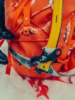 - ქვედა გამაგრებული სამაგრი თასმები A-frame სისტემით თხილამურების გადასატანად